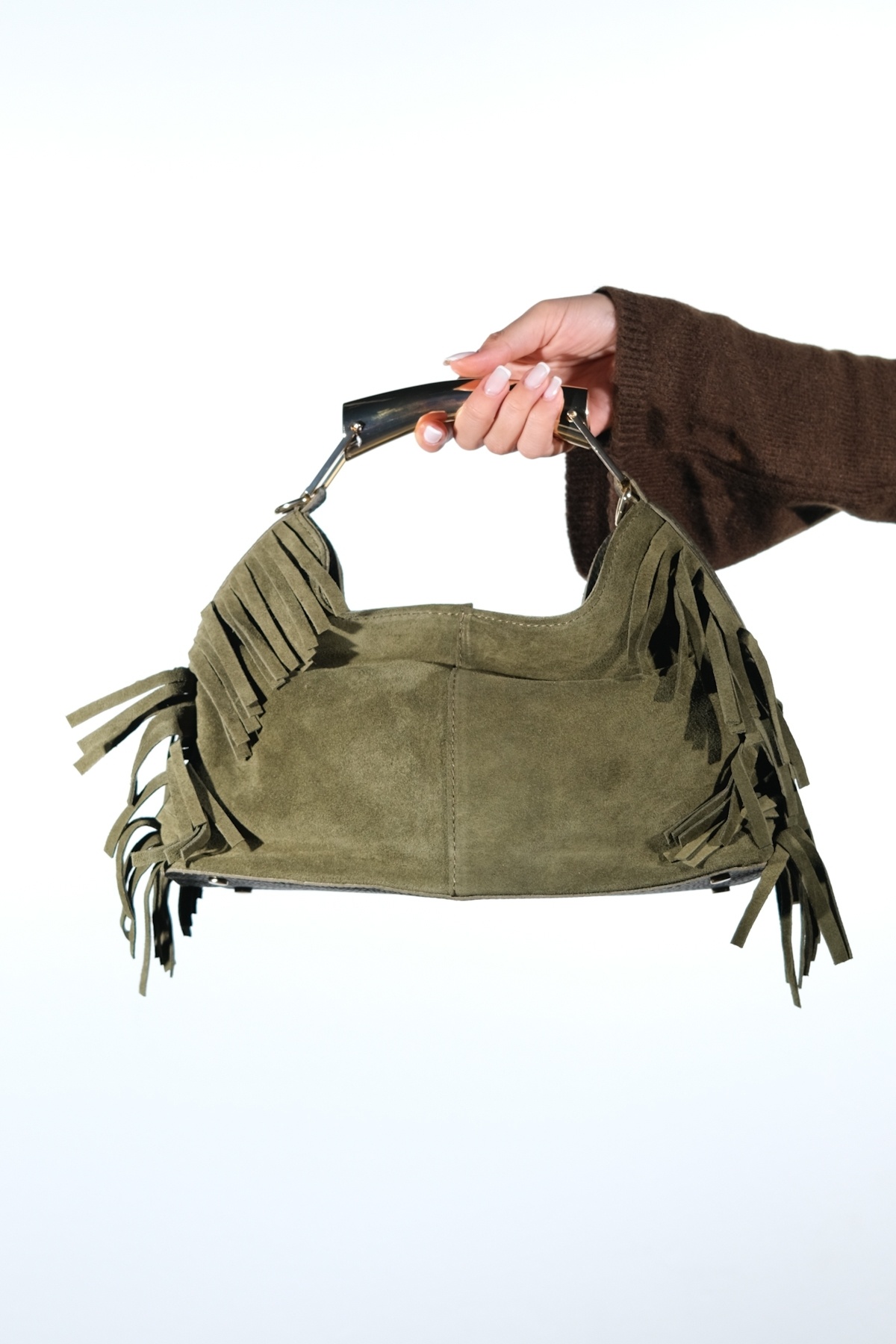 ASTREN Yeşil Süet Hakiki Deri Püsküllü Kadın Kol Çantası ASTREN Yeşil Süet Hakiki Deri Püsküllü Kadın Kol Çantası 56-488 تک سایز