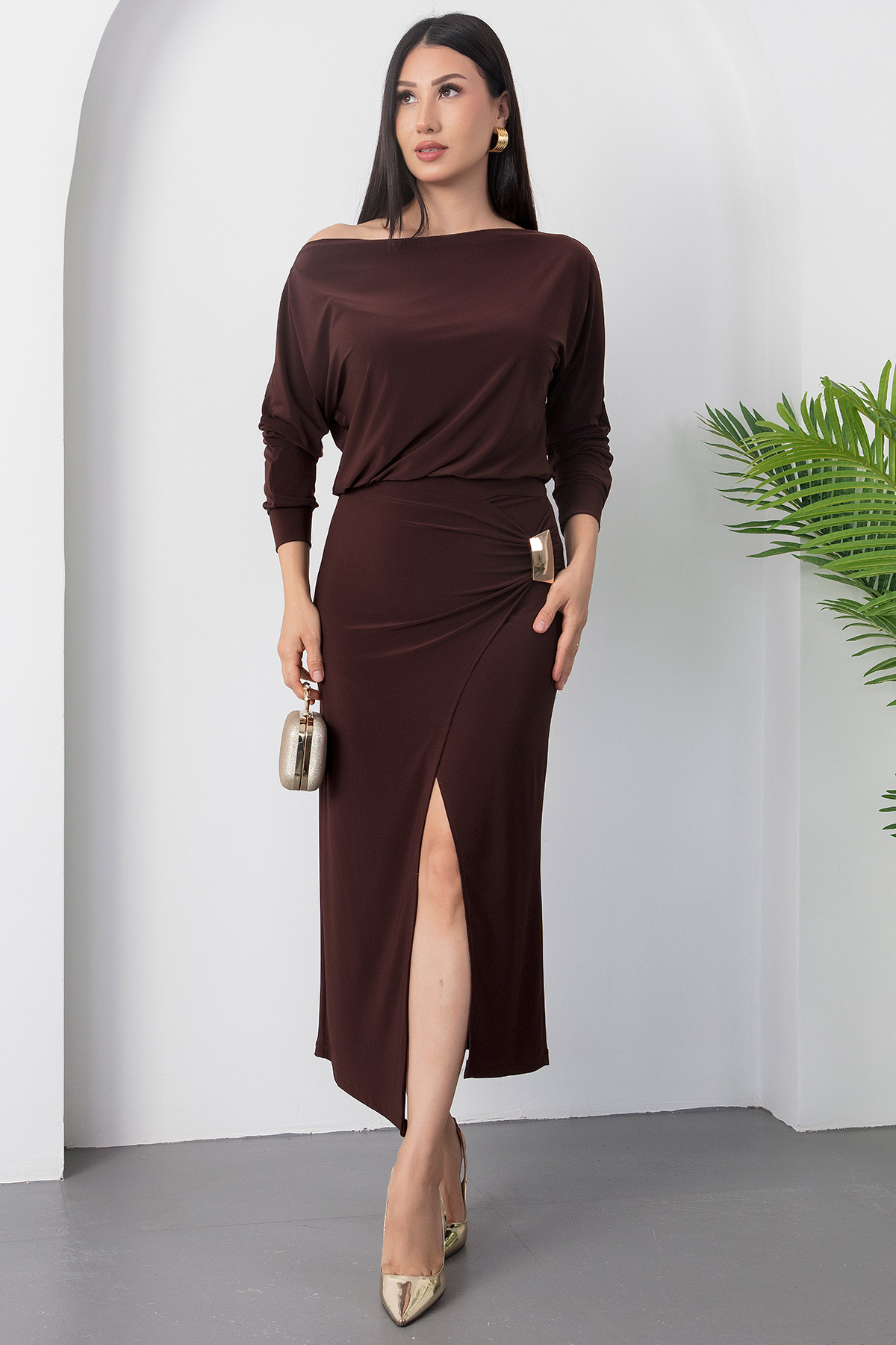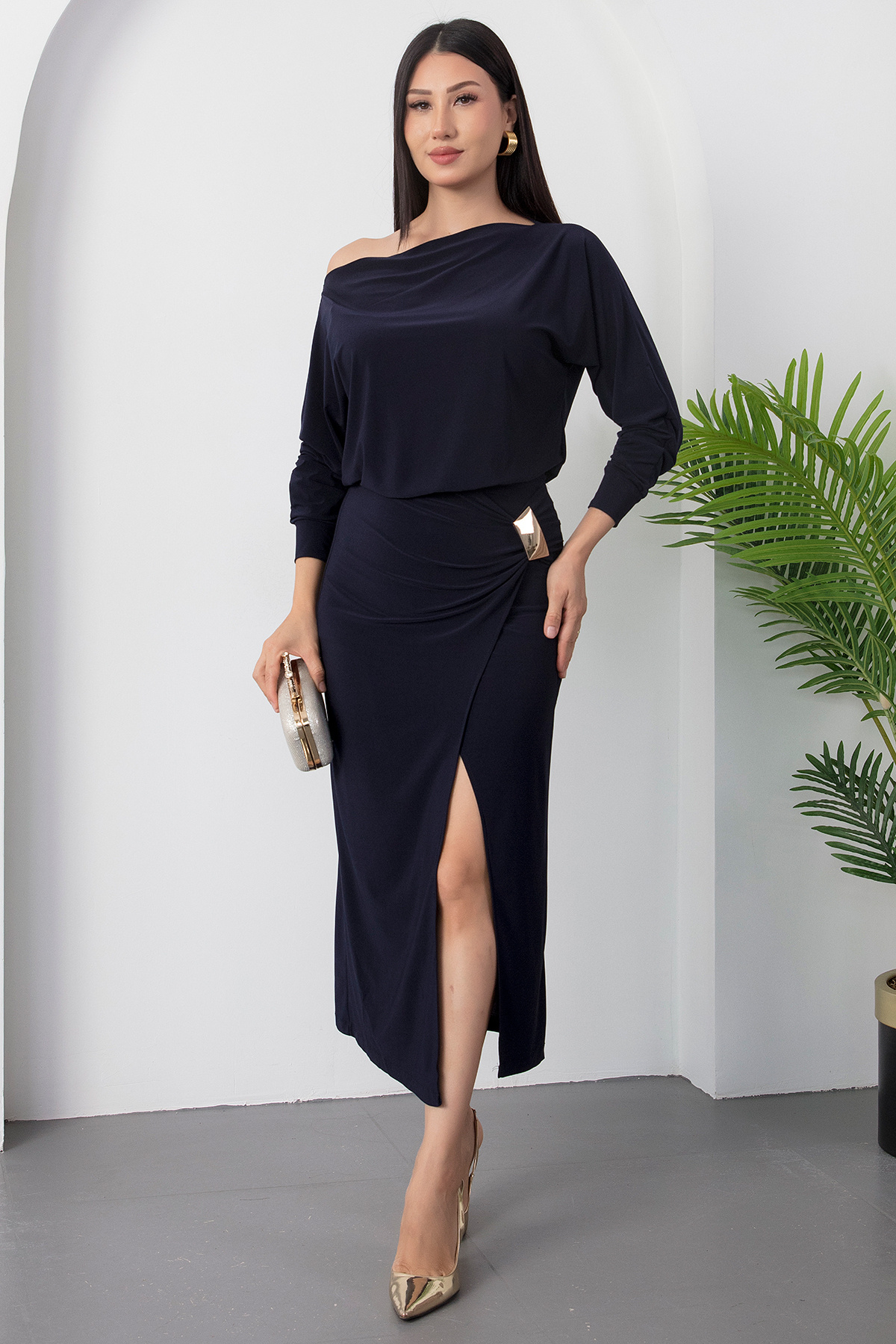 Dik Yaka Omuz Vatkalı Tokalı Dantel Elbise NY3022 Dik Yaka Omuz Vatkalı Tokalı Dantel Elbise NY3022 25Y69073H35 XL