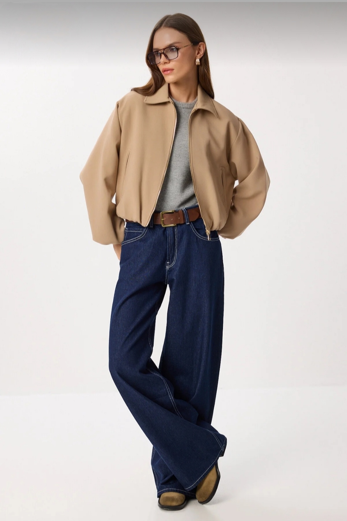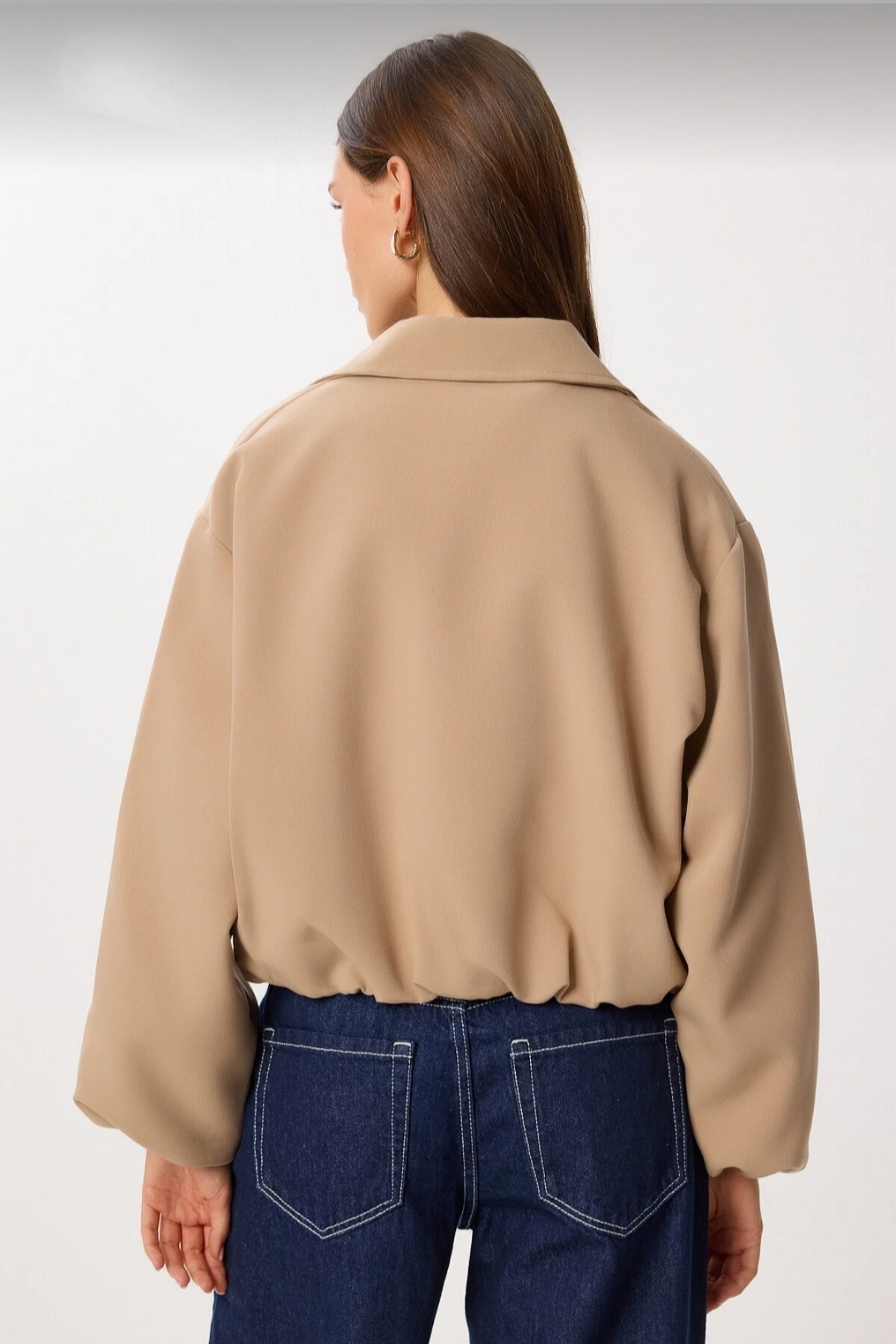 Camel Astarlı Fermuarlı Bel Lastikli Bomber Ceket Camel Astarlı Fermuarlı Bel Lastikli Bomber Ceket 56732368 XL