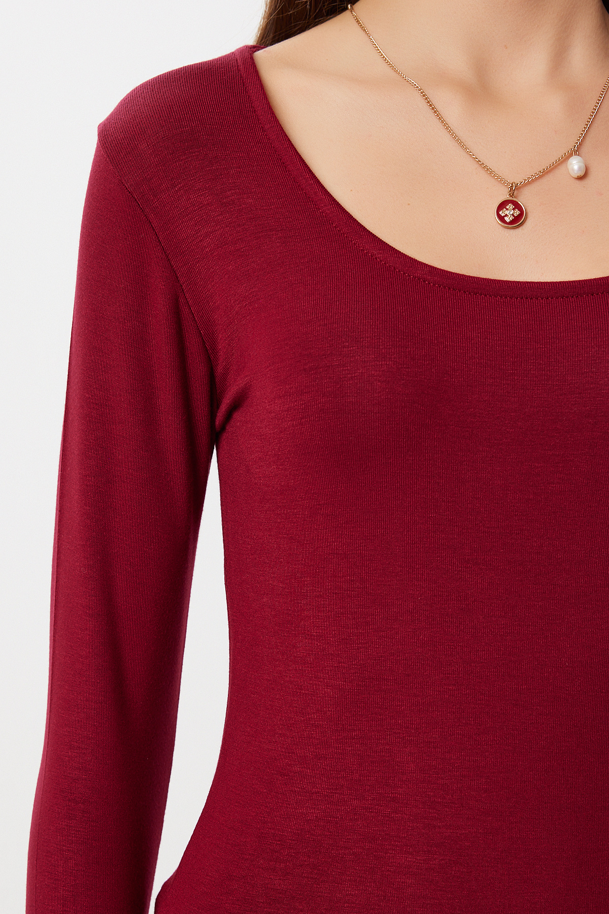 U Yaka Saran Basic Modal Bluz LMW0032 BORDO U Yaka Saran Basic Modal Bluz LMW0032 BORDO 40