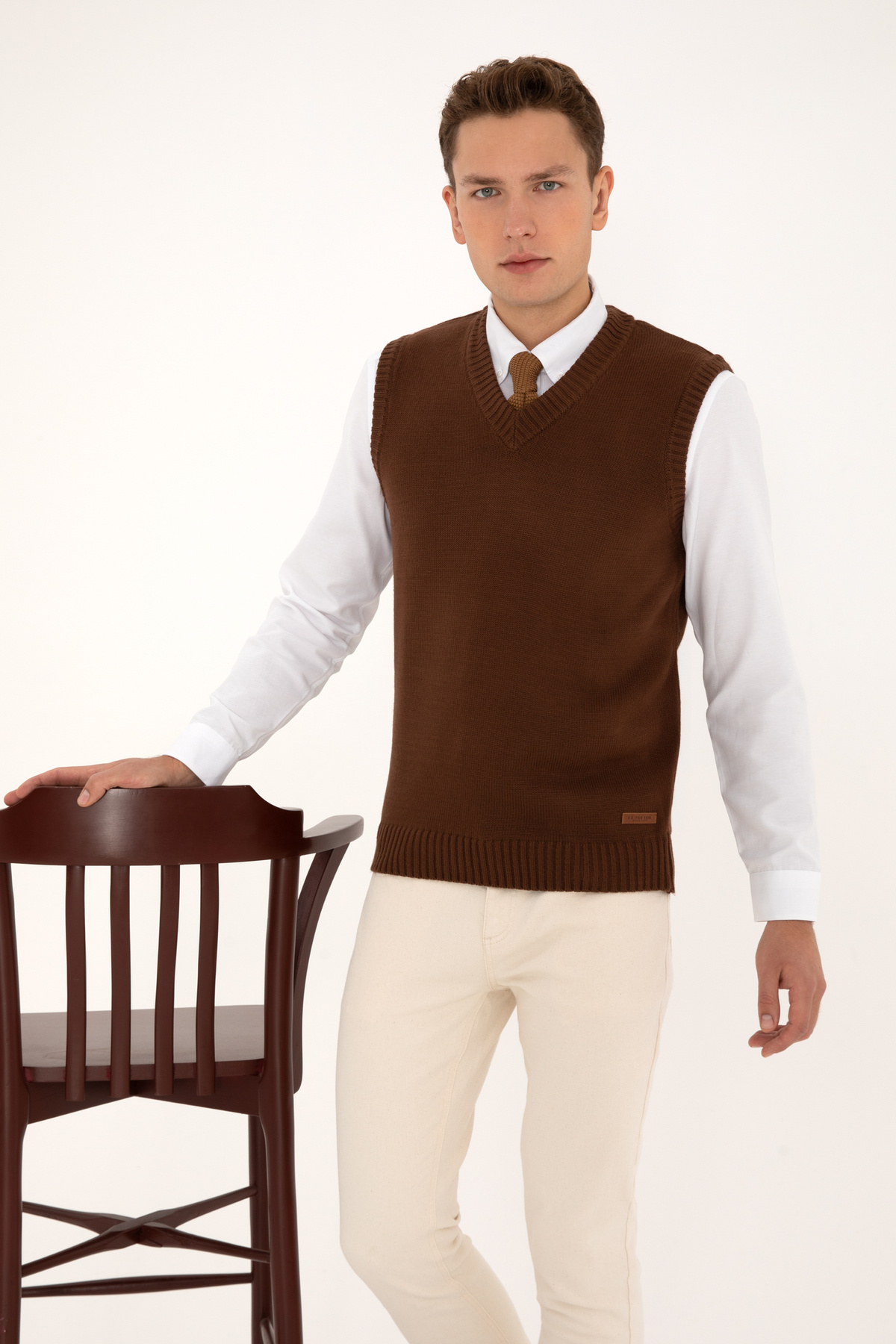 V Yaka Pamuklu Kaşmir Triko Süveter V Yaka Pamuklu Kaşmir Triko Süveter KKBSD6I1DZ002 4XL
