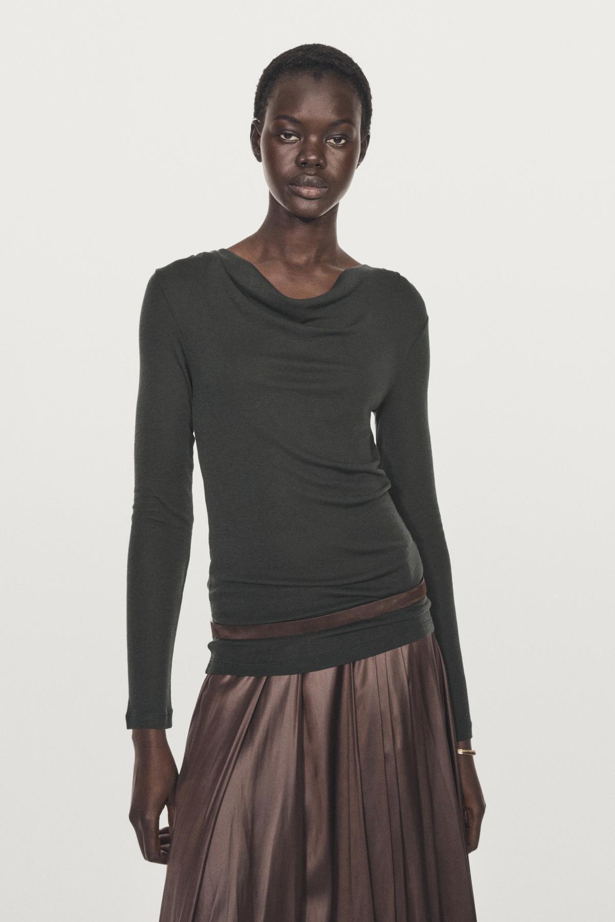 Drape yaka uzun kollu t-shirt Drape yaka uzun kollu t-shirt 00110779206294574 XL