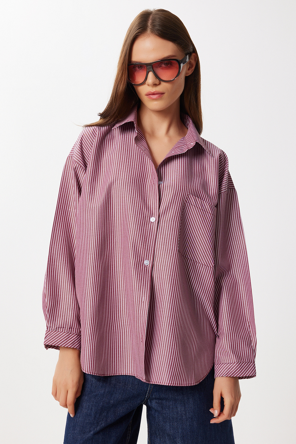 Çizgili Oversize Dokuma Gömlek LDZ0050 BORDO Çizgili Oversize Dokuma Gömlek LDZ0050 BORDO 40