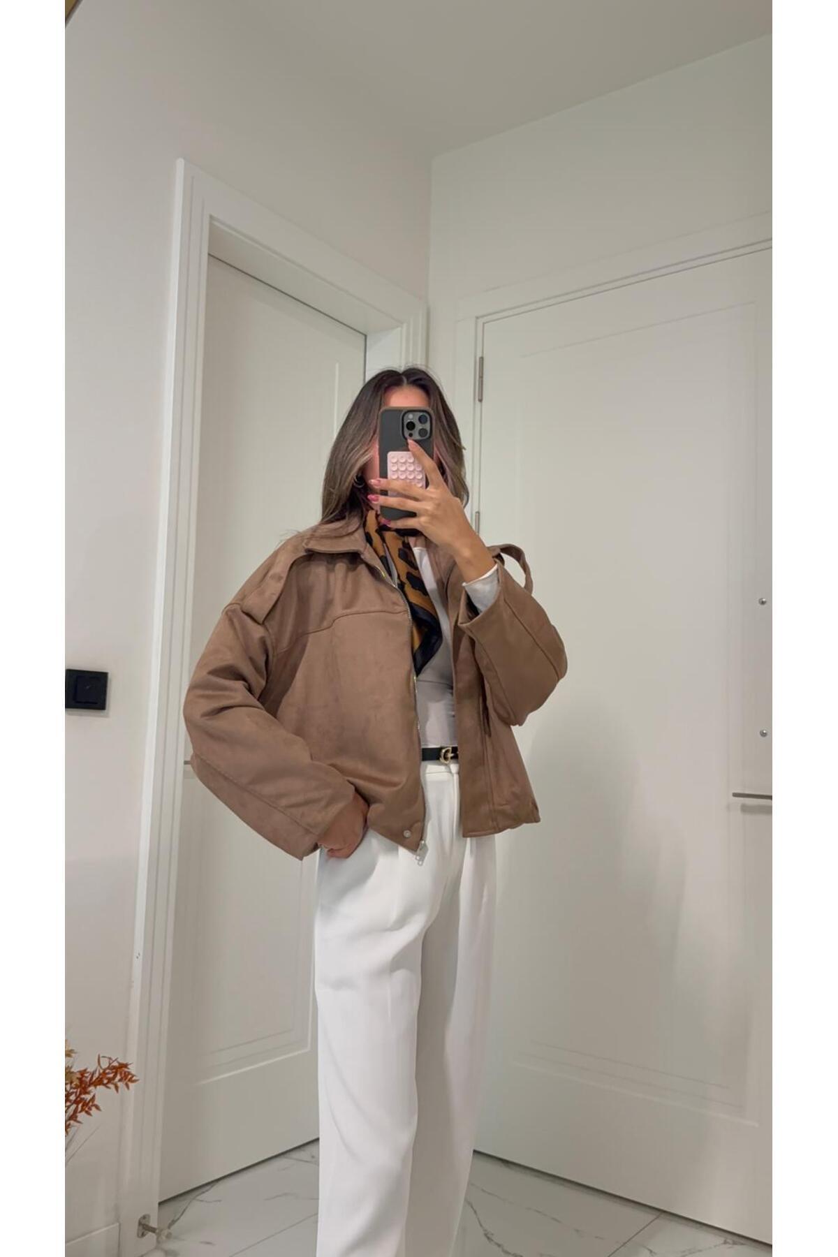 Kadın Oversize Bomber Süet Taba Kahverengi Ceket Kadın Oversize Bomber Süet Taba Kahverengi Ceket SUETC01 L