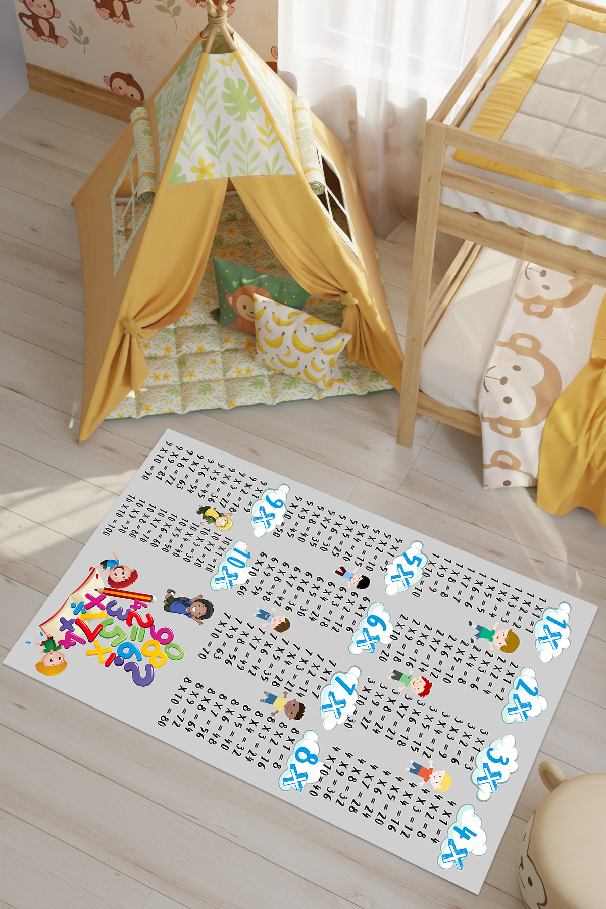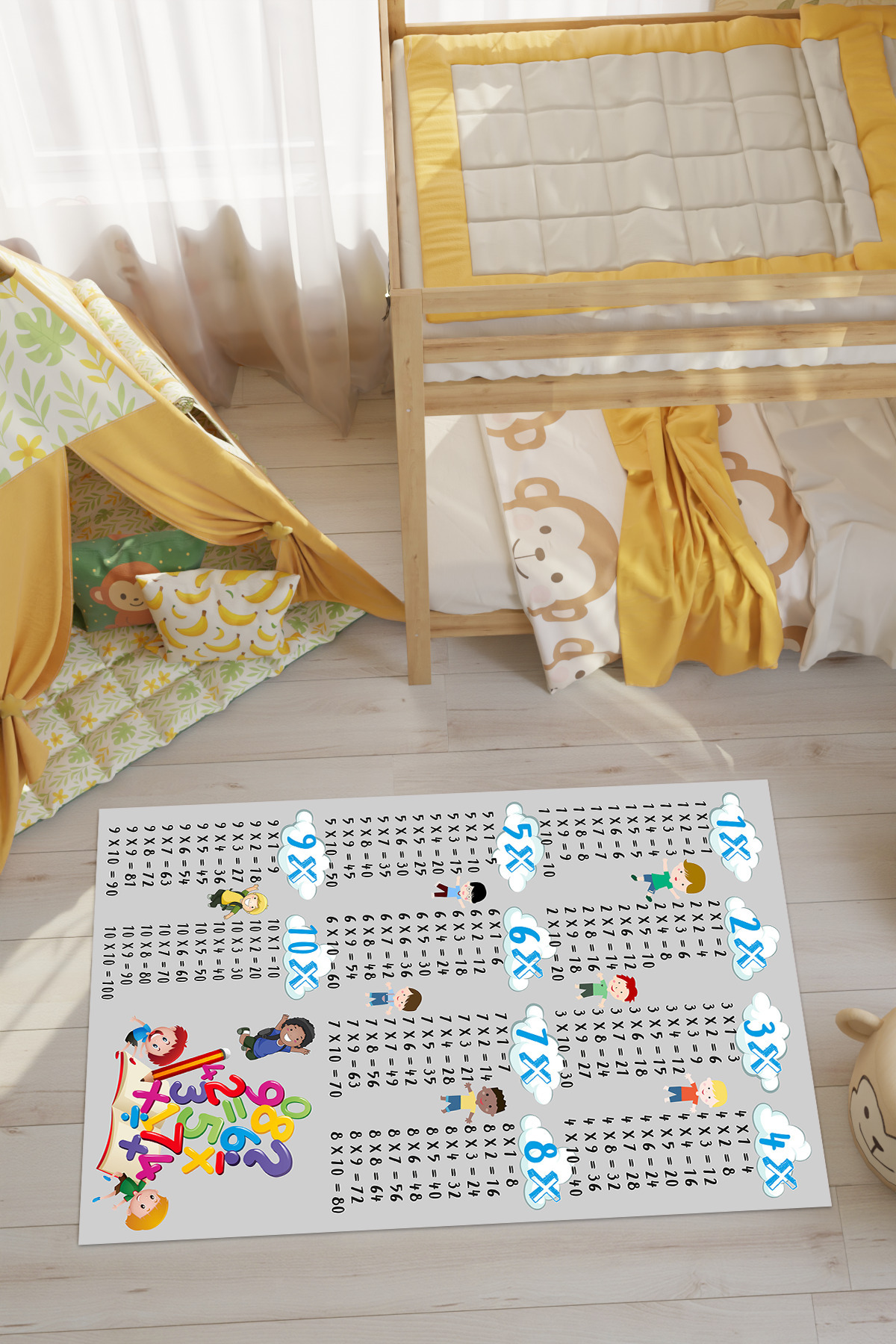 Çarpım Tablosu Desenli Dijital Baskılı Makinede Yıkanabilir Kaymaz Leke Tutmaz Çocuk Odası Halısı Çarpım Tablosu Desenli Dijital Baskılı Makinede Yıkanabilir Kaymaz Leke Tutmaz Çocuk Odası Halısı DPÇ0199 160 x 230