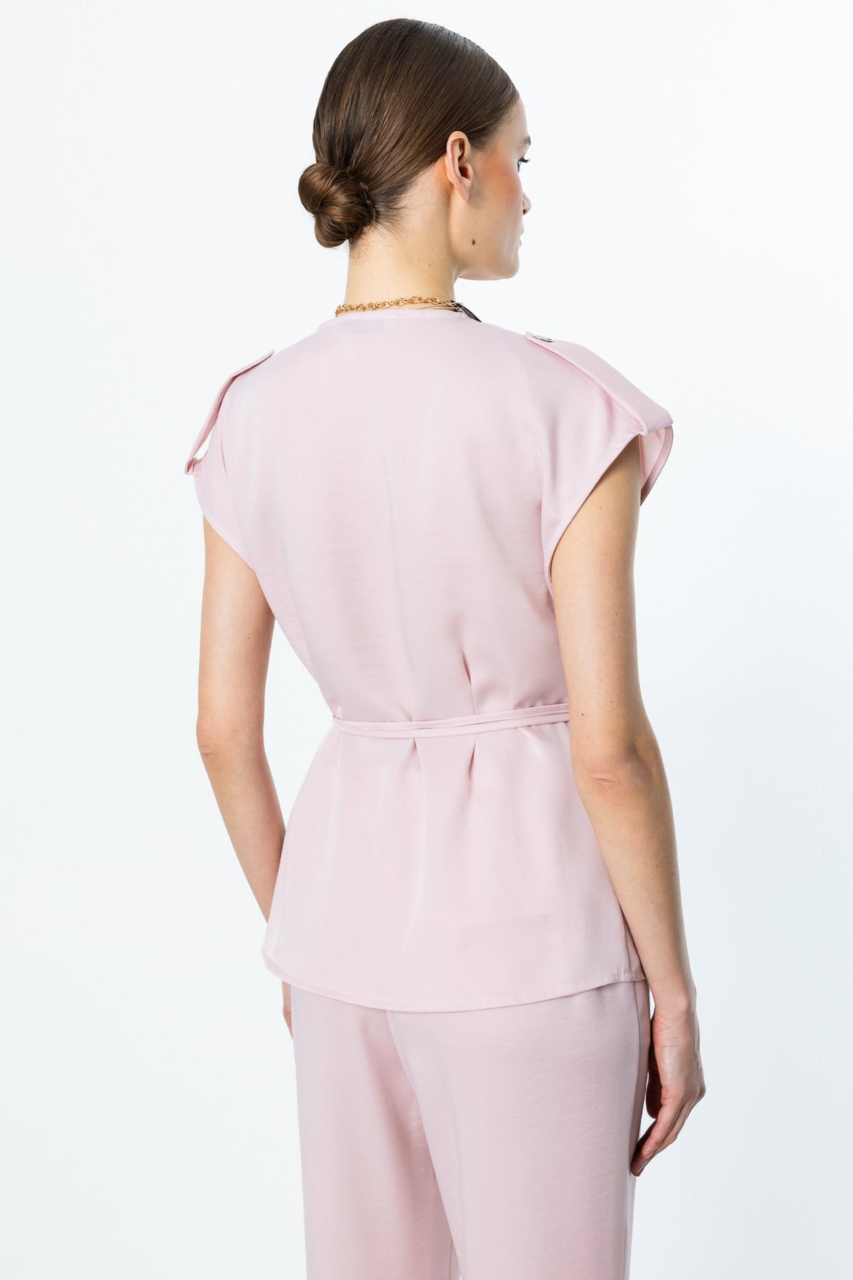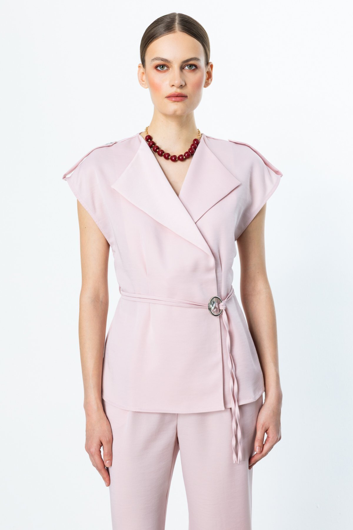Kruvaze Yaka İp Kemerli Yelek Somon 4264 Kruvaze Yaka İp Kemerli Yelek Somon 4264 42