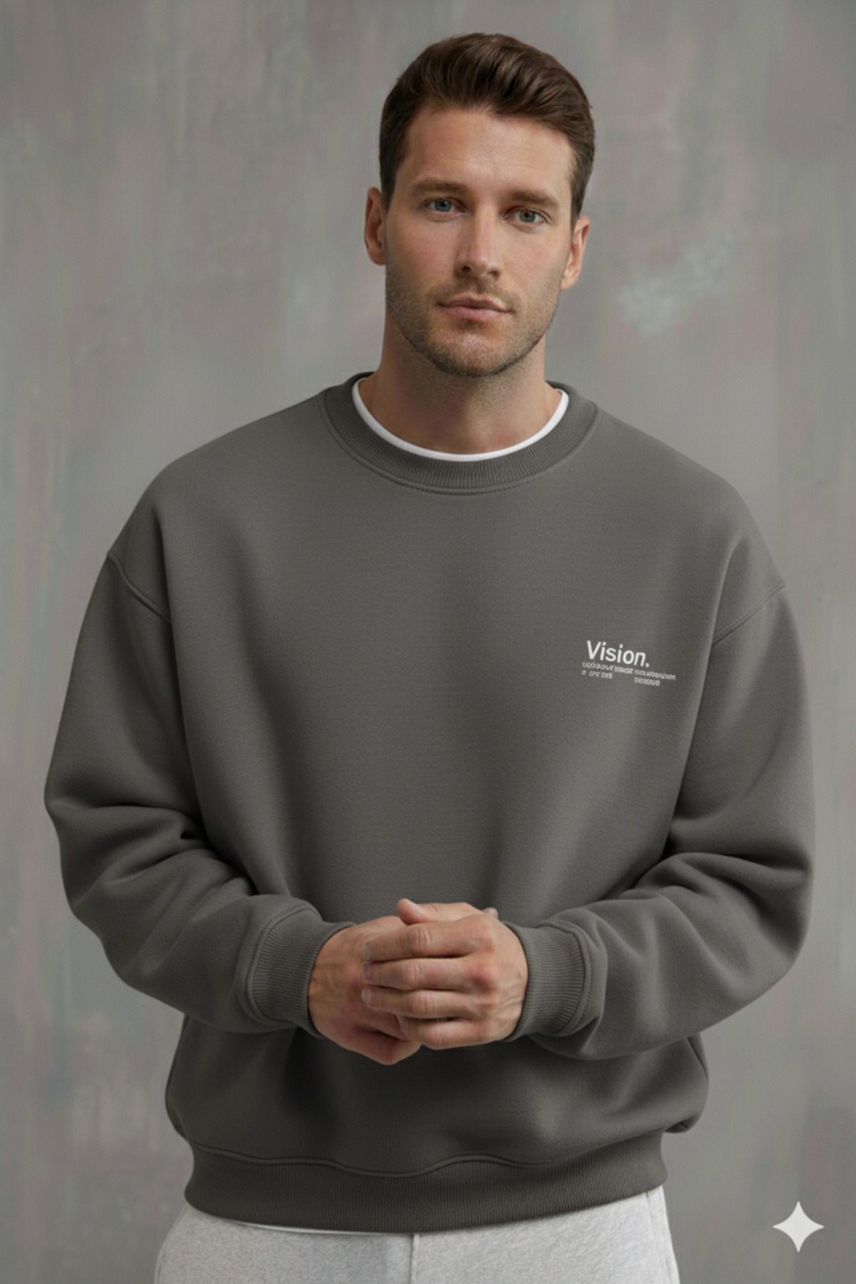 Vision Baskılı Basic Bisiklet Yaka Relaxed Regular Kışlık Erkek Sweatshirt Vision Baskılı Basic Bisiklet Yaka Relaxed Regular Kışlık Erkek Sweatshirt visionkışlıksweataslanlıdwn XL