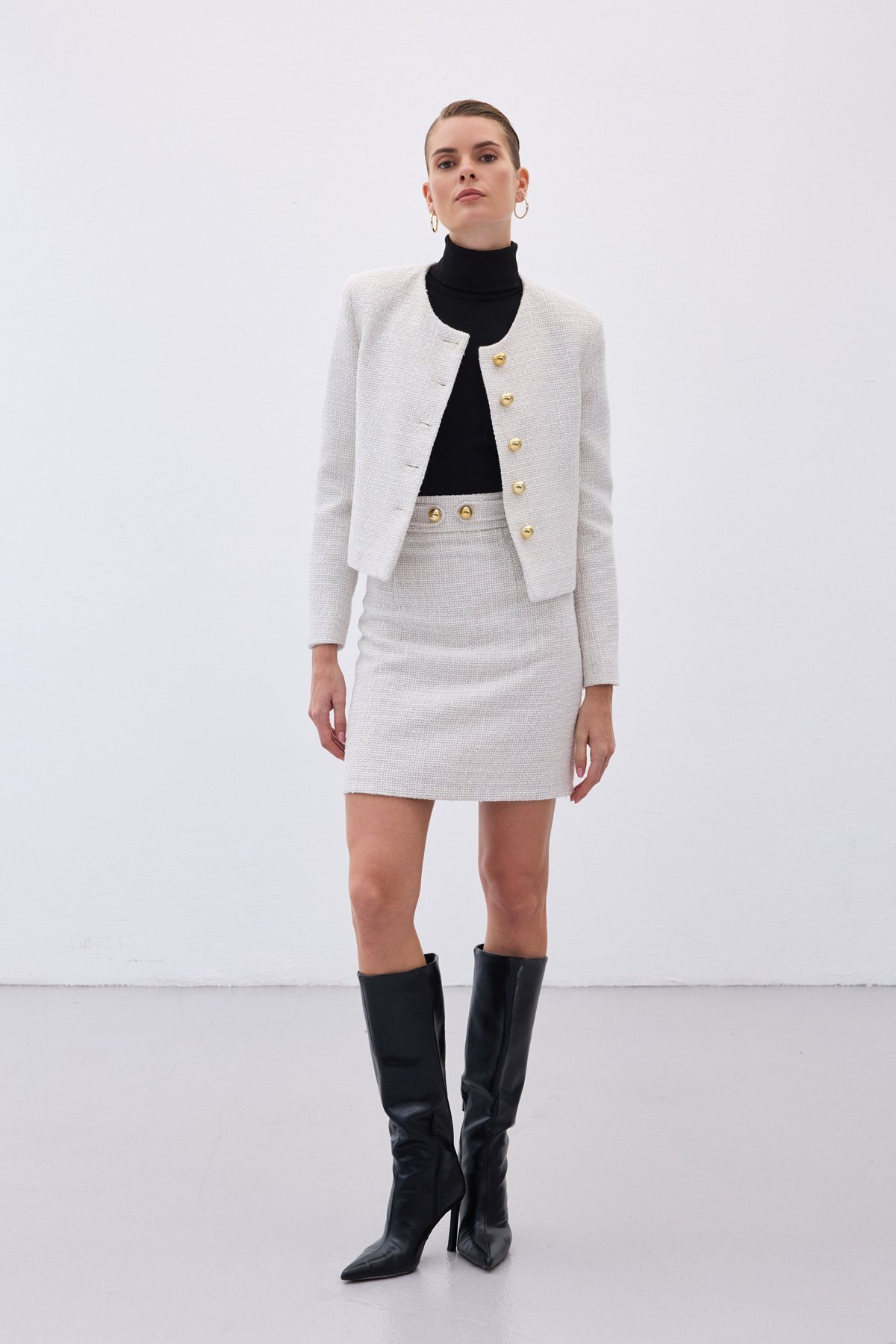 Düğme Detaylı Mini Tüvit Etek - Taş Düğme Detaylı Mini Tüvit Etek - Taş STN139KET1895 42