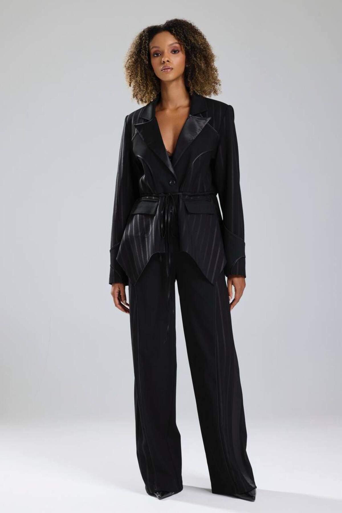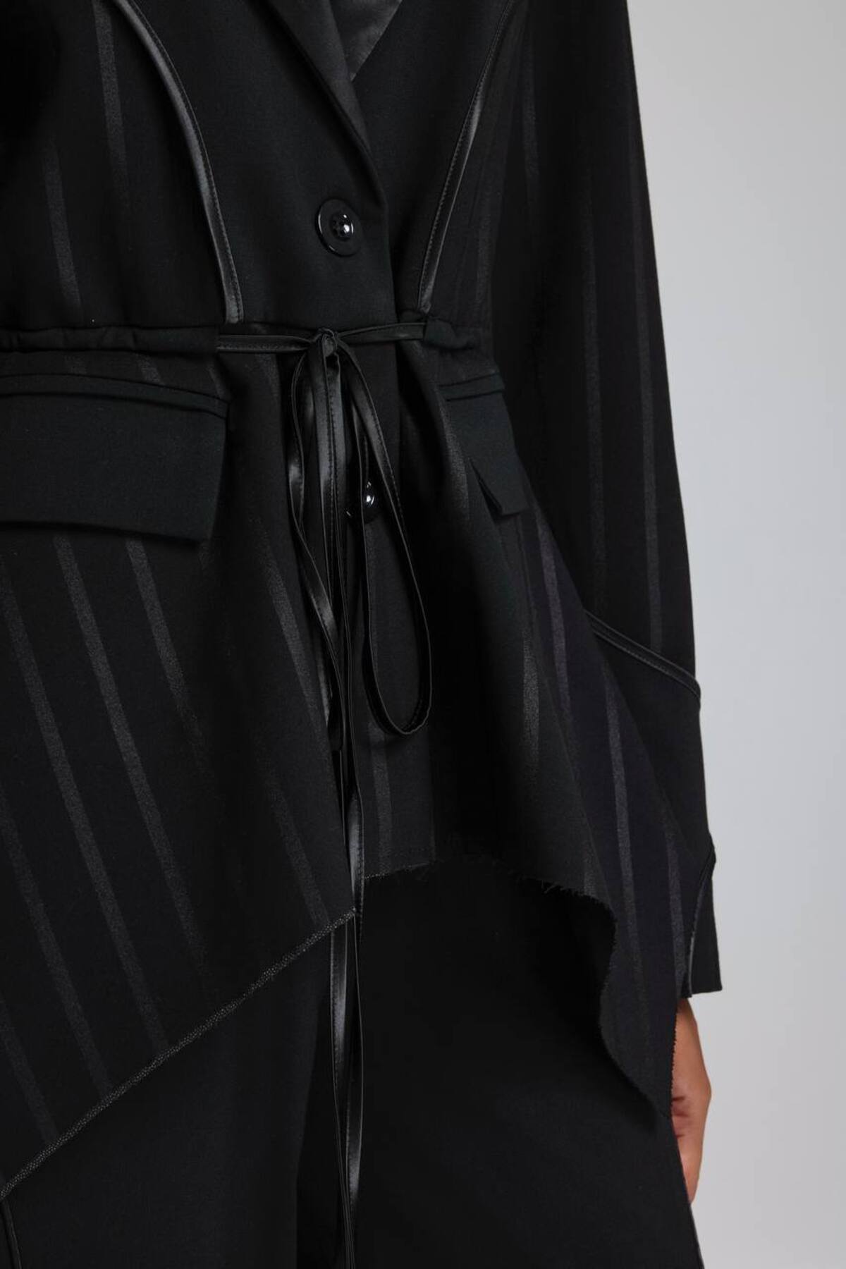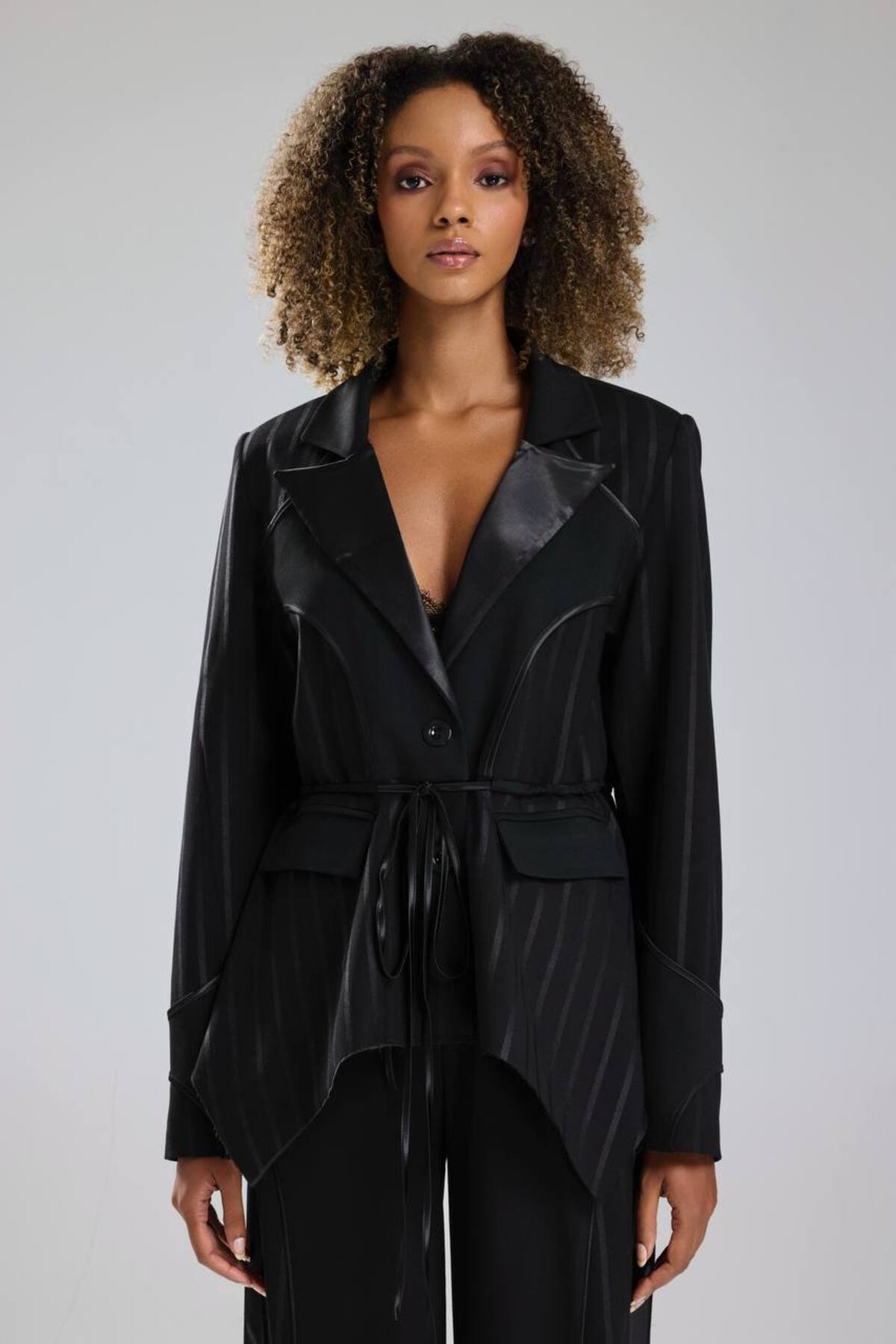 Kadın Çizgili Varak Baskı ve Saten Detaylı Tasarım Blazer Ceket Kadın Çizgili Varak Baskı ve Saten Detaylı Tasarım Blazer Ceket TW3-1690 L