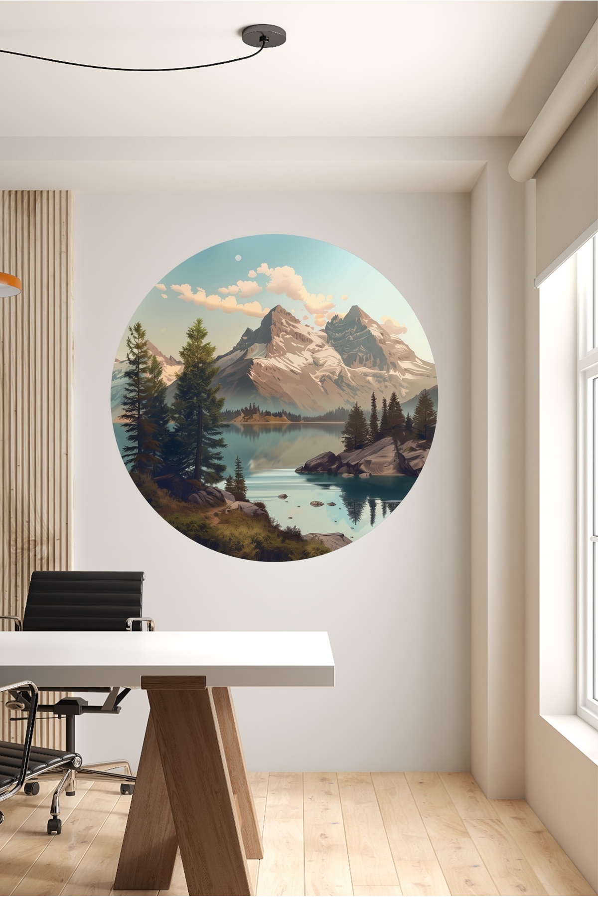 Dağ ve Göl Manzaralı Orman Detaylı Yuvarlak Sticker Doğa Temalı Dekoratif Duvar Süsü Dağ ve Göl Manzaralı Orman Detaylı Yuvarlak Sticker Doğa Temalı Dekoratif Duvar Süsü KSS-STCK-Y-Y-113 40 x 40