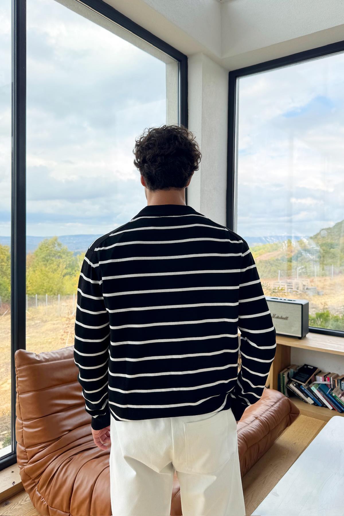 Çizgili V Yaka Triko Kazak Çizgili V Yaka Triko Kazak FLAW-191-007-019 XL