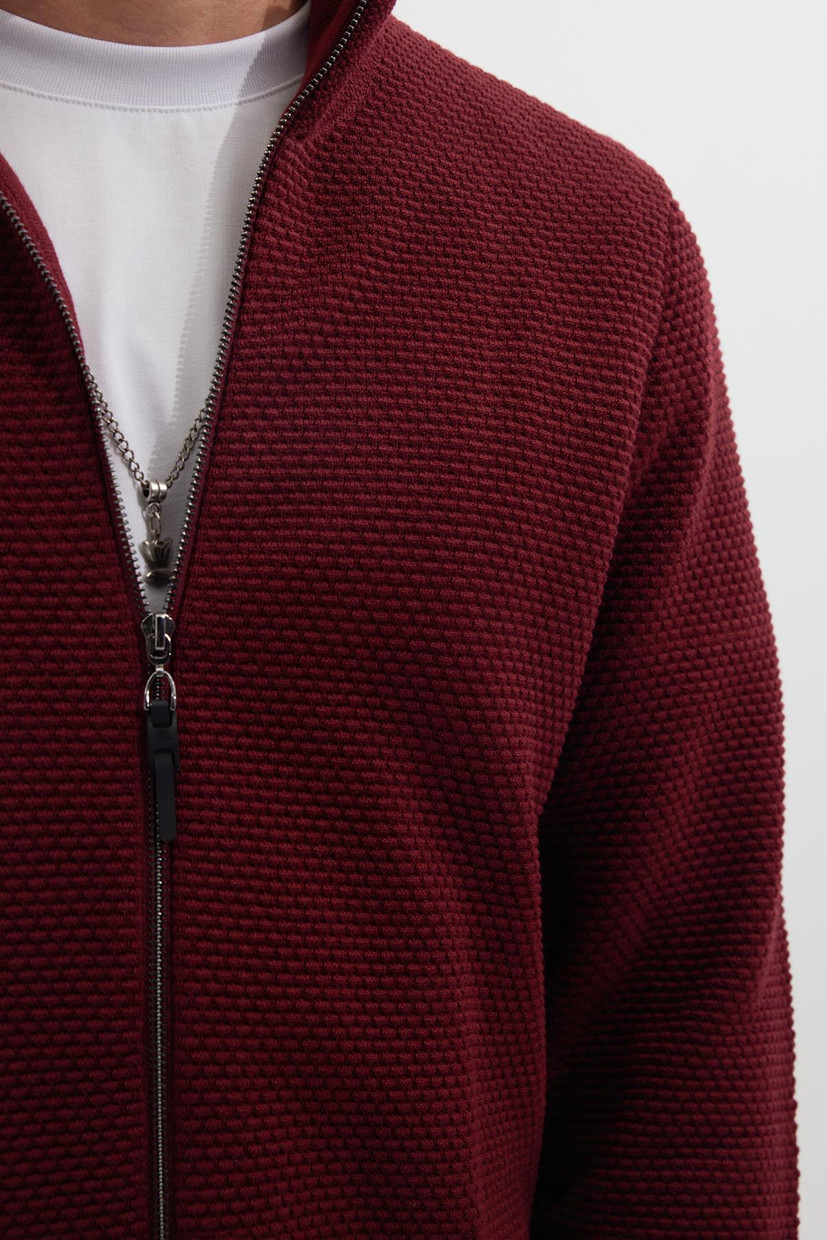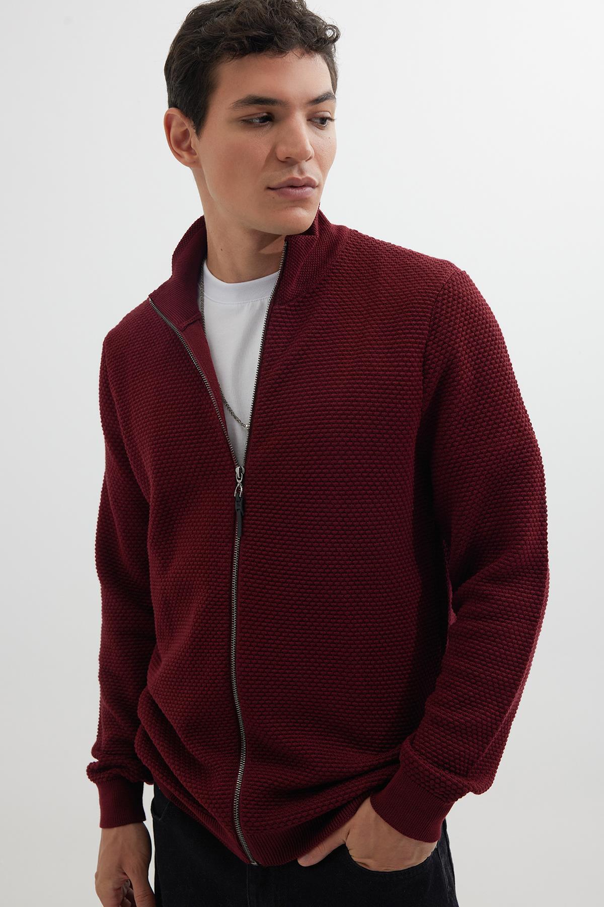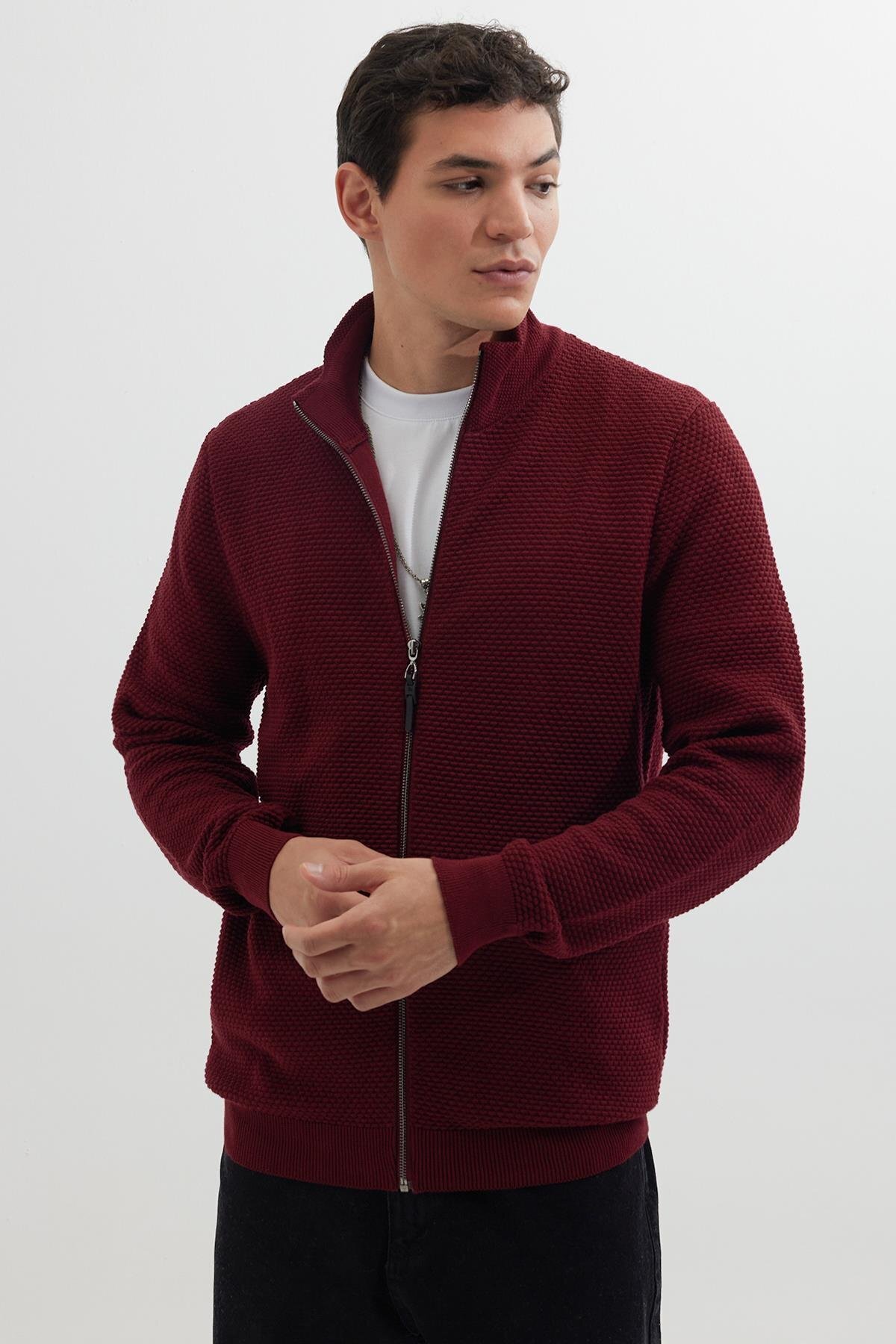 Erkek Standart Fit Normal Kesim Desenli Yarım Balıkçı Yaka Fermuarlı Bordo Hırka Erkek Standart Fit Normal Kesim Desenli Yarım Balıkçı Yaka Fermuarlı Bordo Hırka HR200007 2XL