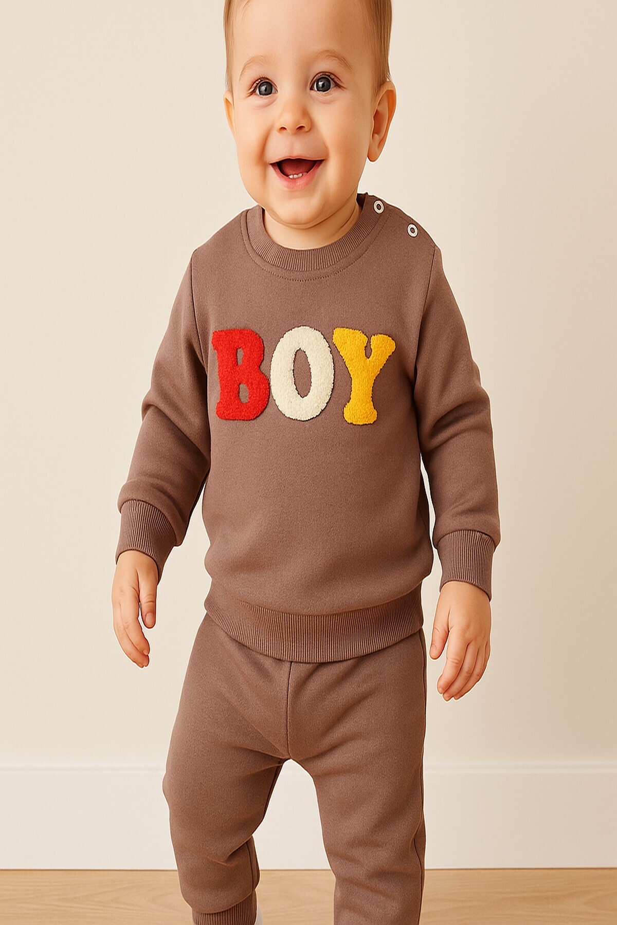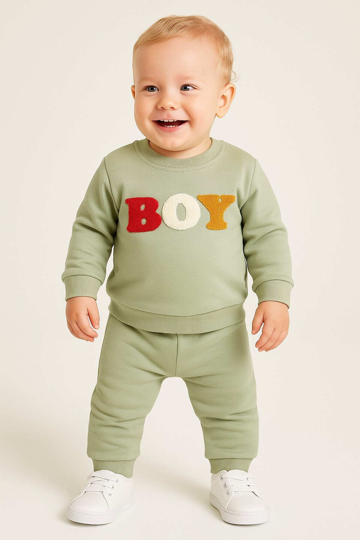 Erkek Bebek BOY Nakışlı Renkli Harfli 2’li Takım Sweatshirt ve Eşofman Altı 3-6-9-12ay Erkek Bebek BOY Nakışlı Renkli Harfli 2’li Takım Sweatshirt ve Eşofman Altı 3-6-9-12ay uso110580 12-18 AY