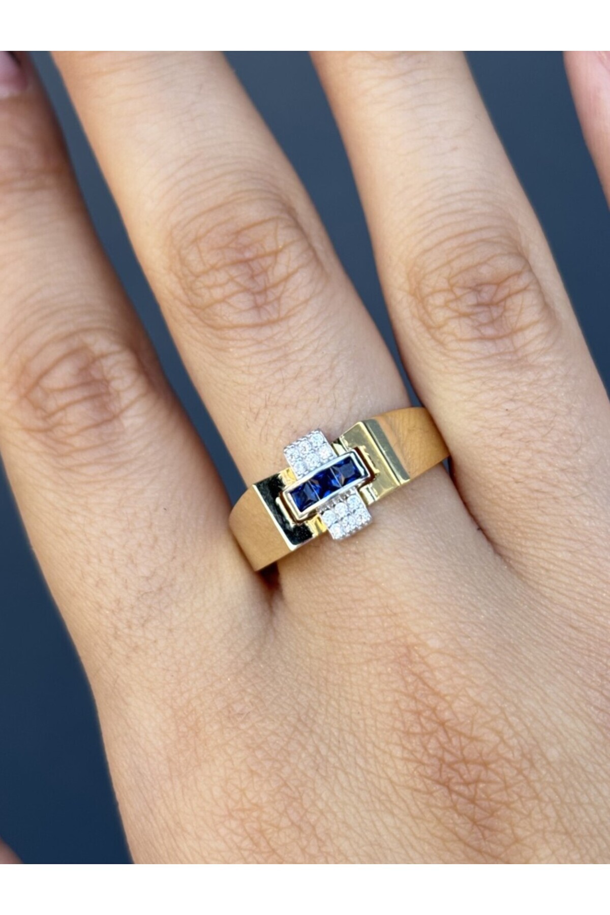 14 Ayar Altın Mavi Taşlı Yüzük 969 14 Ayar Altın Mavi Taşlı Yüzük 969 P8980S3434 تک سایز