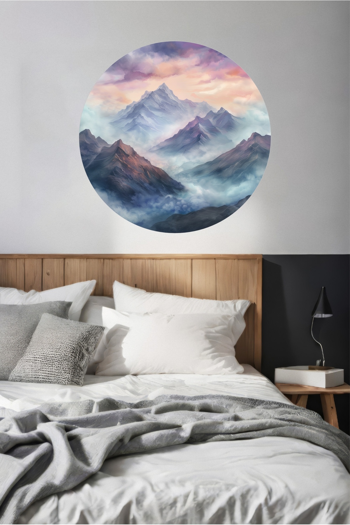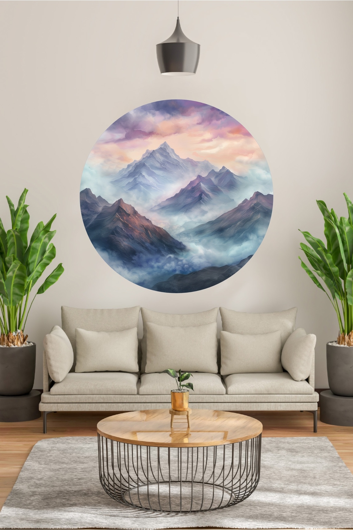 Sisler İçinde Dağlar Manzaralı Yuvarlak Sticker Pastel Renkli Doğa Duvar Dekoru Sisler İçinde Dağlar Manzaralı Yuvarlak Sticker Pastel Renkli Doğa Duvar Dekoru KSS-STCK-Y-Y-125 40 x 40