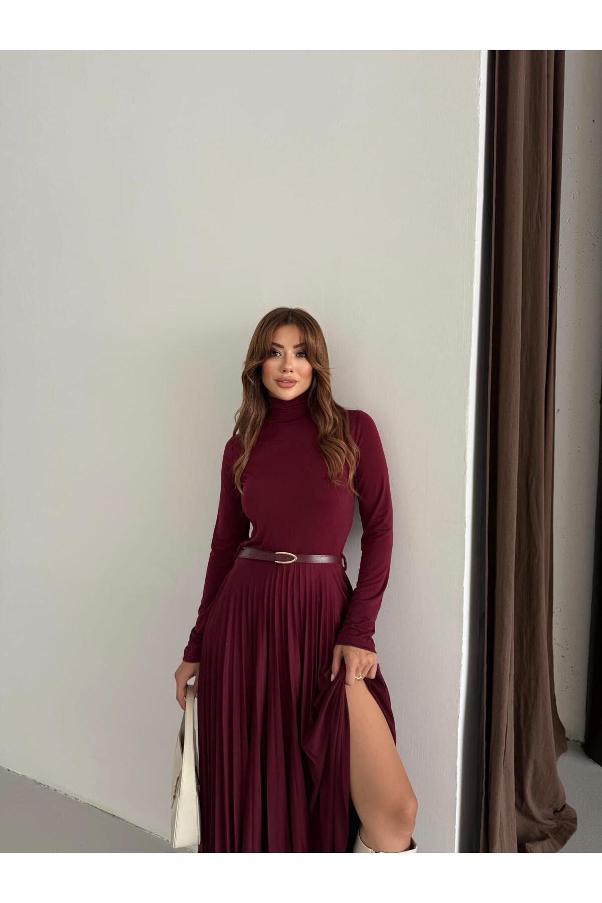 BUKETLİ Kadın Dik Yaka Altı Pliseli Kemerli Sandy Kumaş Uzun Kollu Uzun ELBİSE BUKETLİ Kadın Dik Yaka Altı Pliseli Kemerli Sandy Kumaş Uzun Kollu Uzun ELBİSE 112061 XL