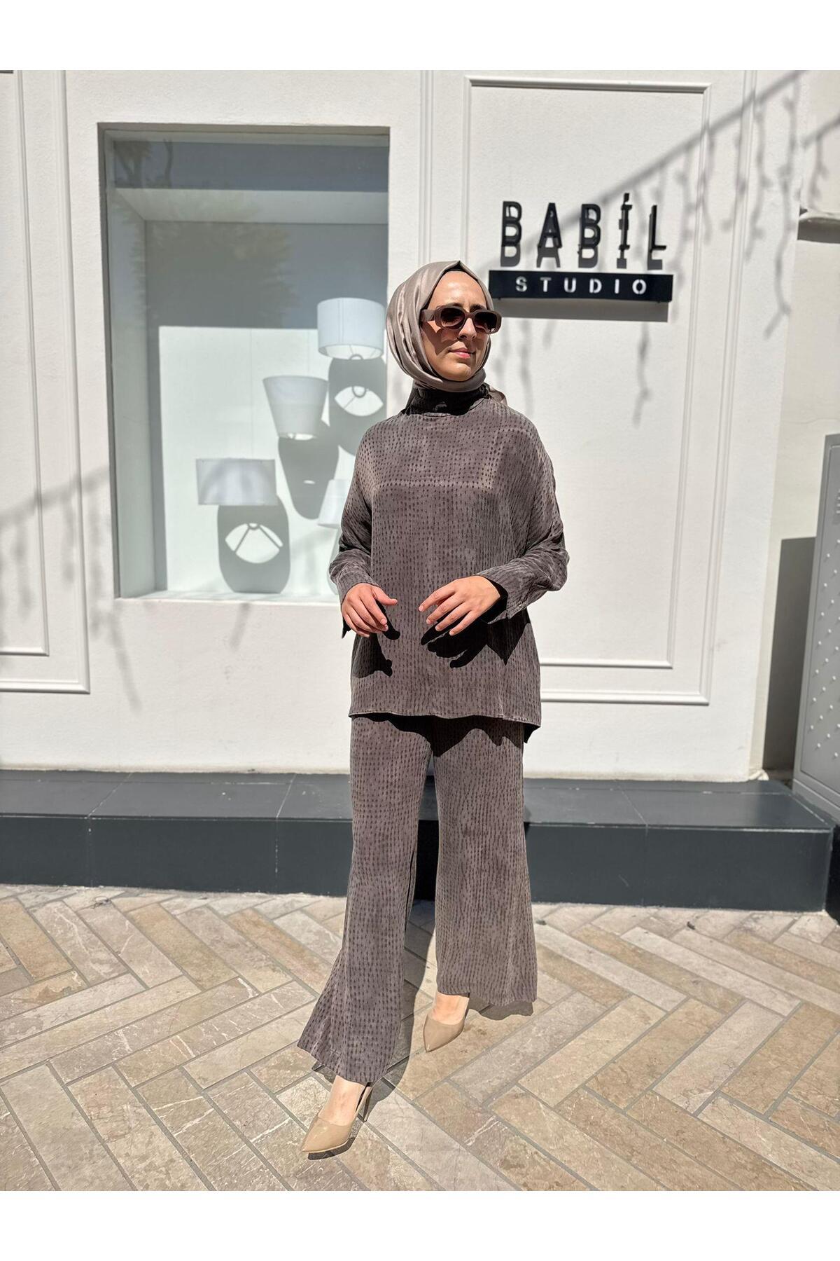 TD4558 Mila Dokulu Şal Detay Kadın Takım Kahve TD4558 Mila Dokulu Şal Detay Kadın Takım Kahve 2