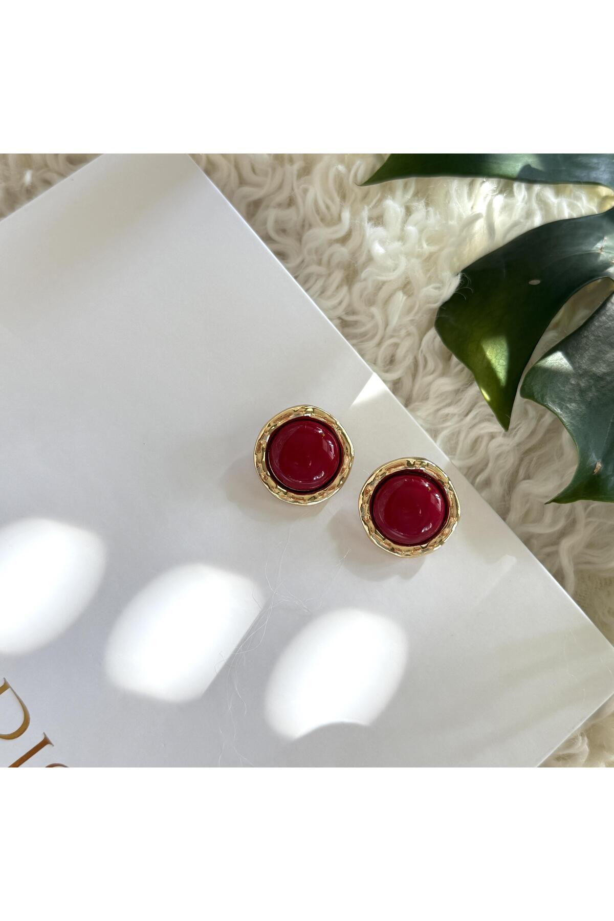 Üçgen Bordo Mineli Gold Vintage Küpe Üçgen Bordo Mineli Gold Vintage Küpe alc8663 تک سایز