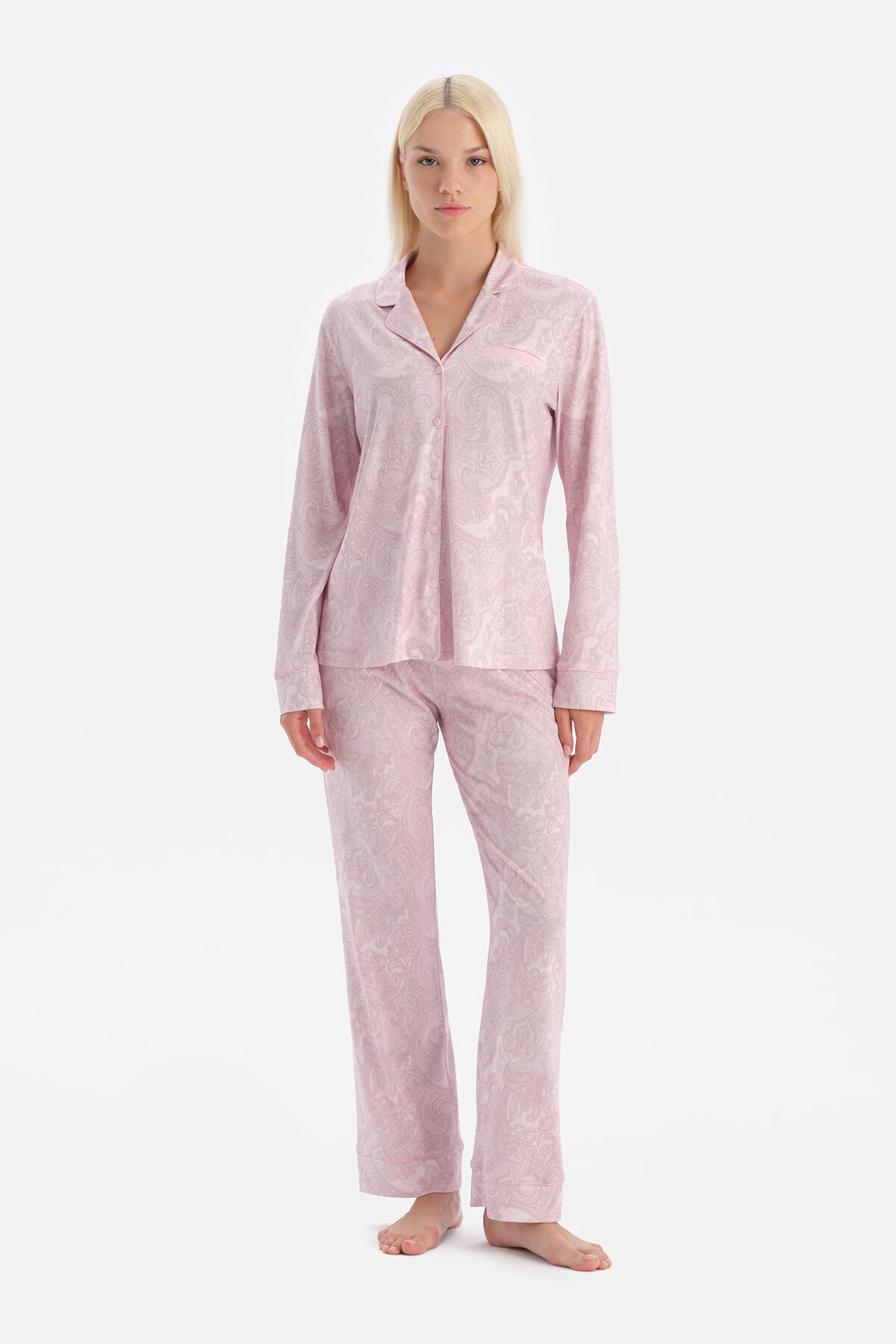 Açık Pembe Şal Desenli Gömlek Pantolon Takım Açık Pembe Şal Desenli Gömlek Pantolon Takım 25WW17929BB 2XL