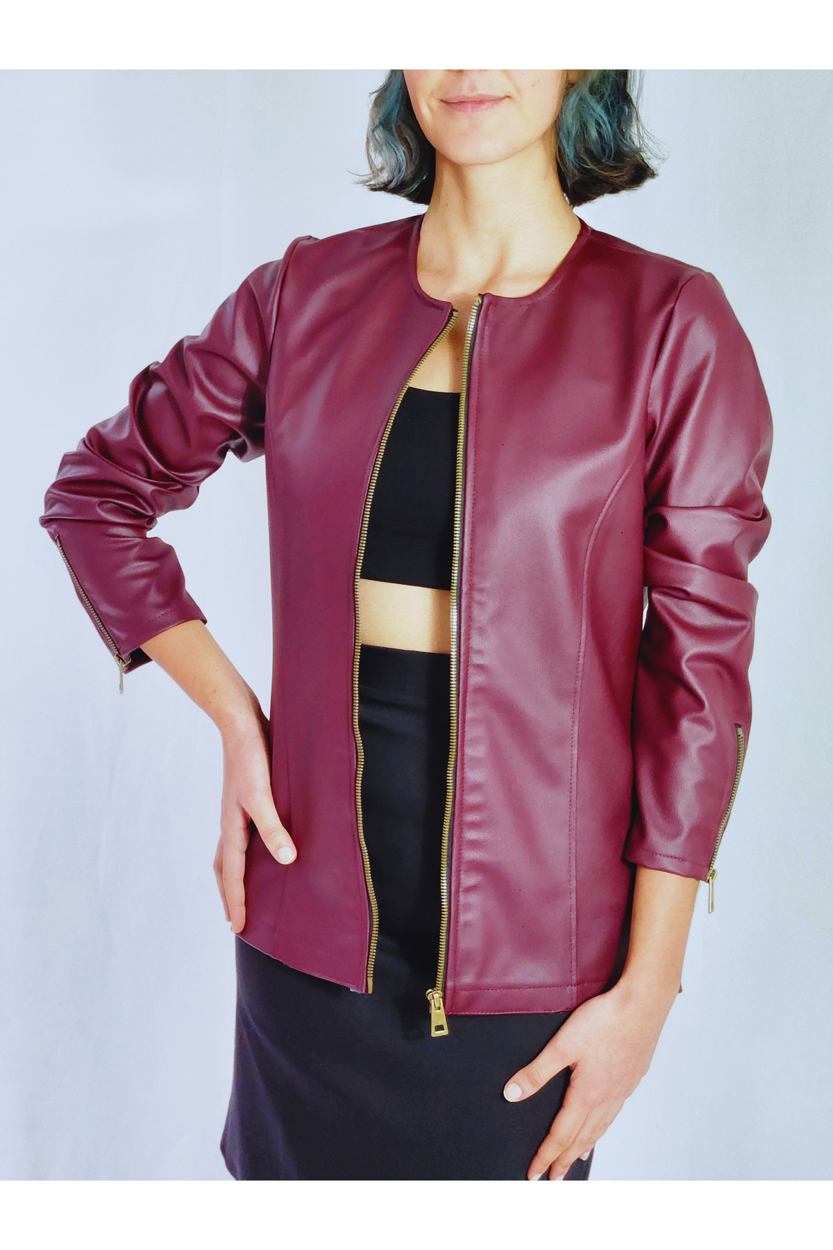 VİŞNE ÇÜRÜĞÜ RENGİ DERİ CEKET VİŞNE ÇÜRÜĞÜ RENGİ DERİ CEKET DC-0040 6XL