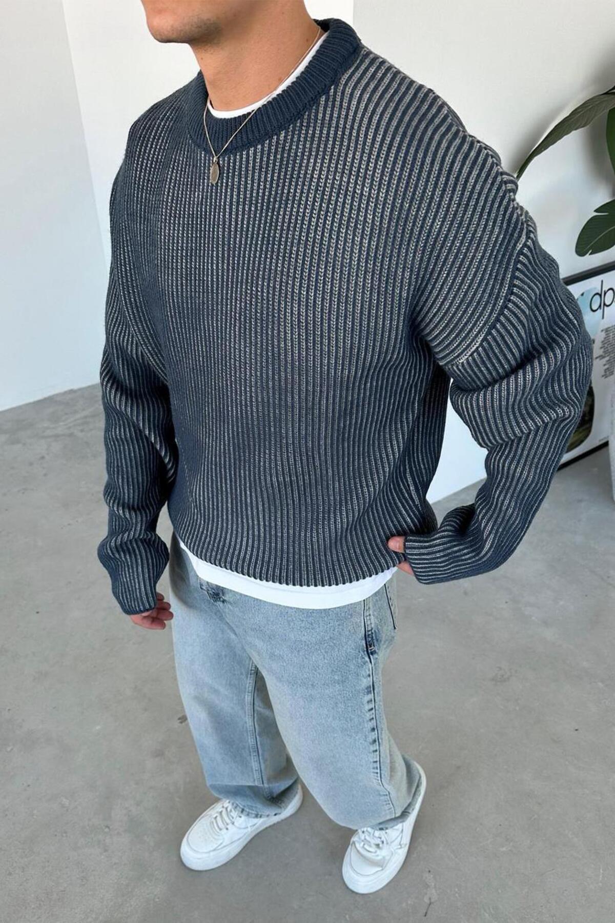 İndigo Soft Yıkamalı Relaxed Triko Kazak İndigo Soft Yıkamalı Relaxed Triko Kazak HF0065-GO-K XL