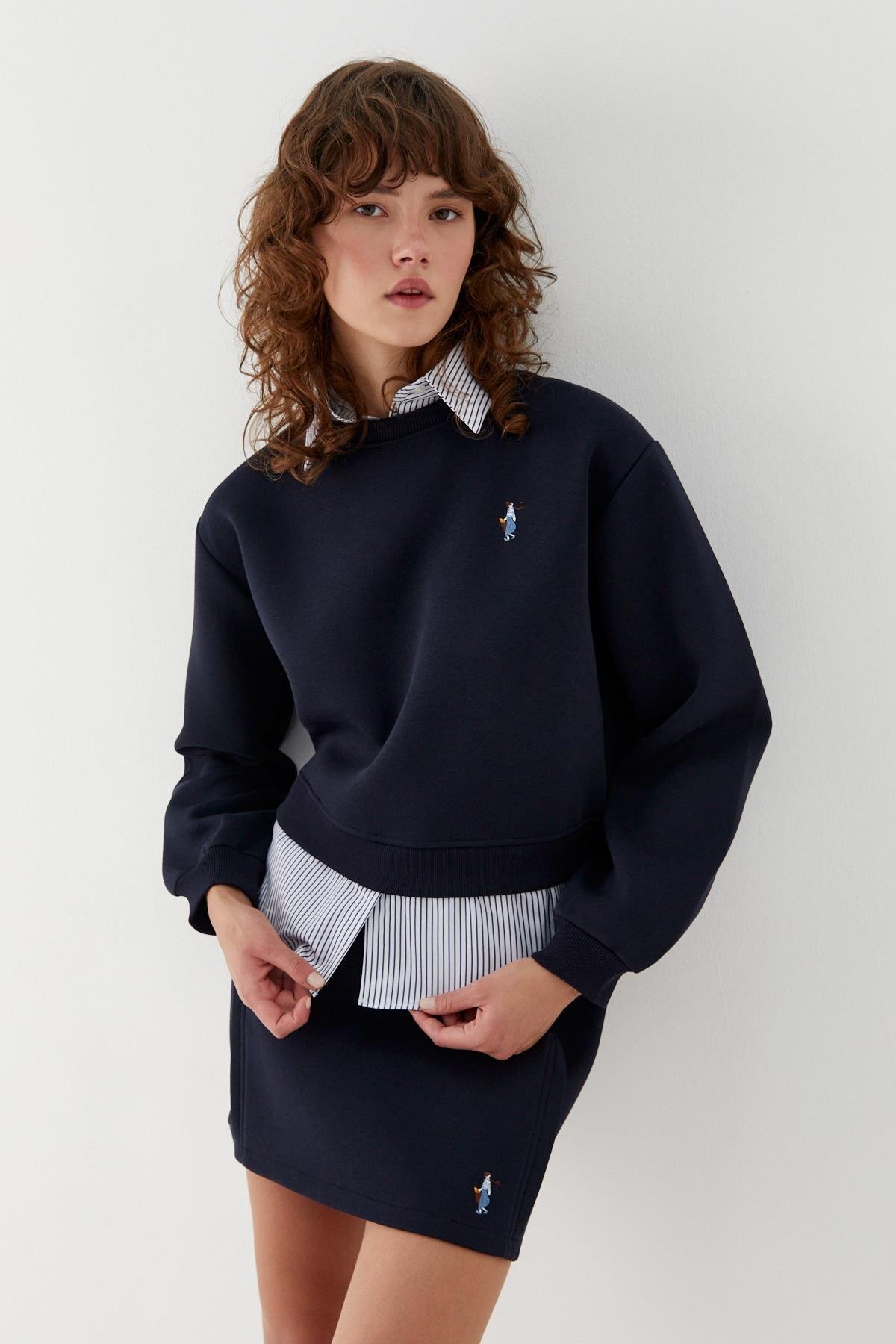 Gömlek Detaylı Sweatshirt Lacivert Gömlek Detaylı Sweatshirt Lacivert KZ0755_023 L