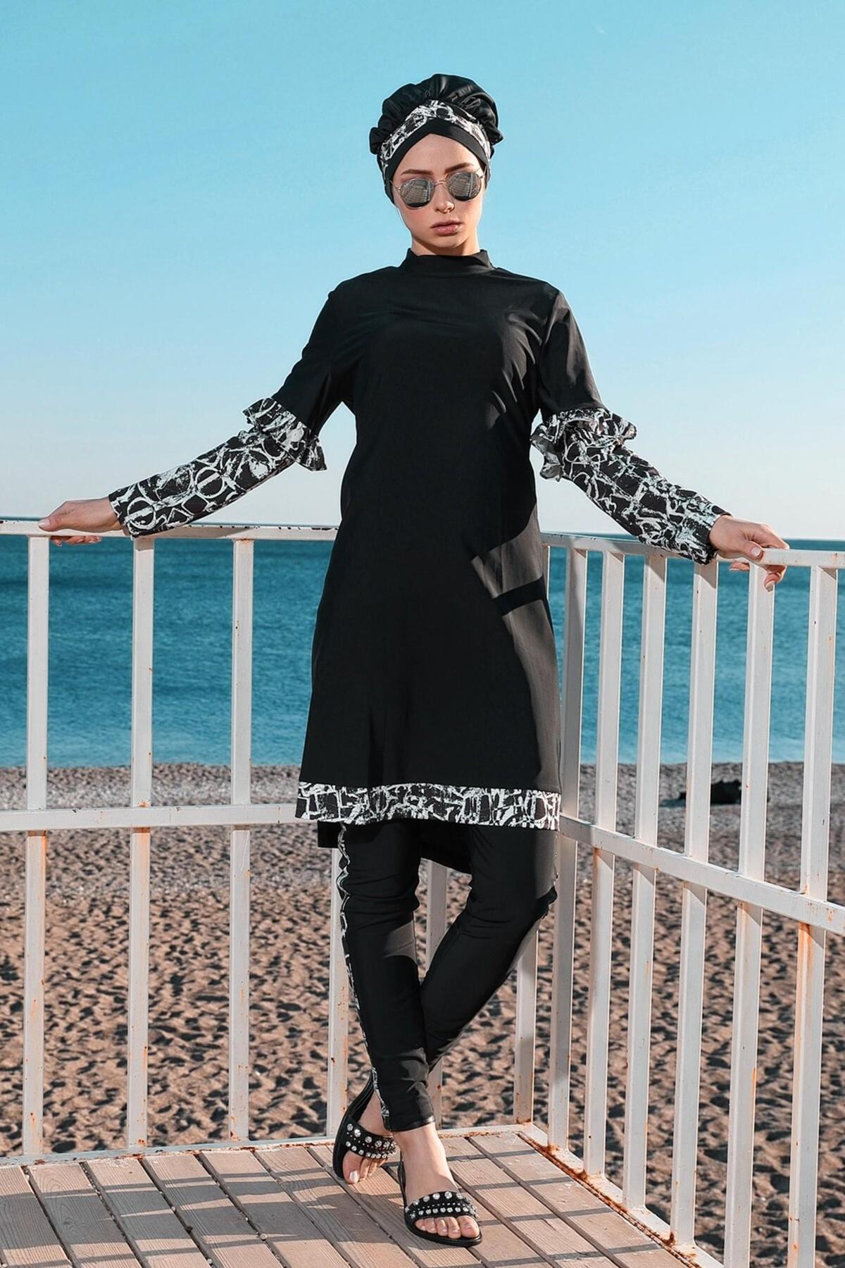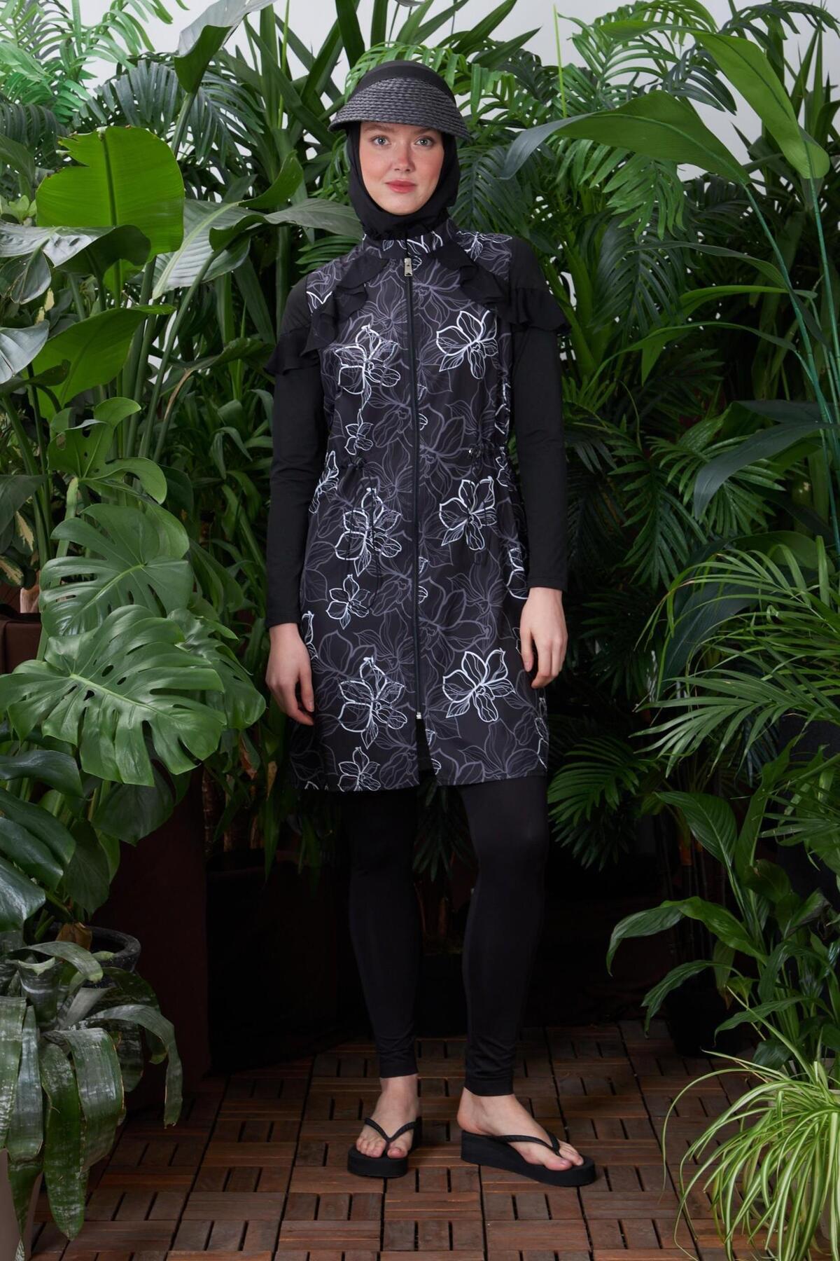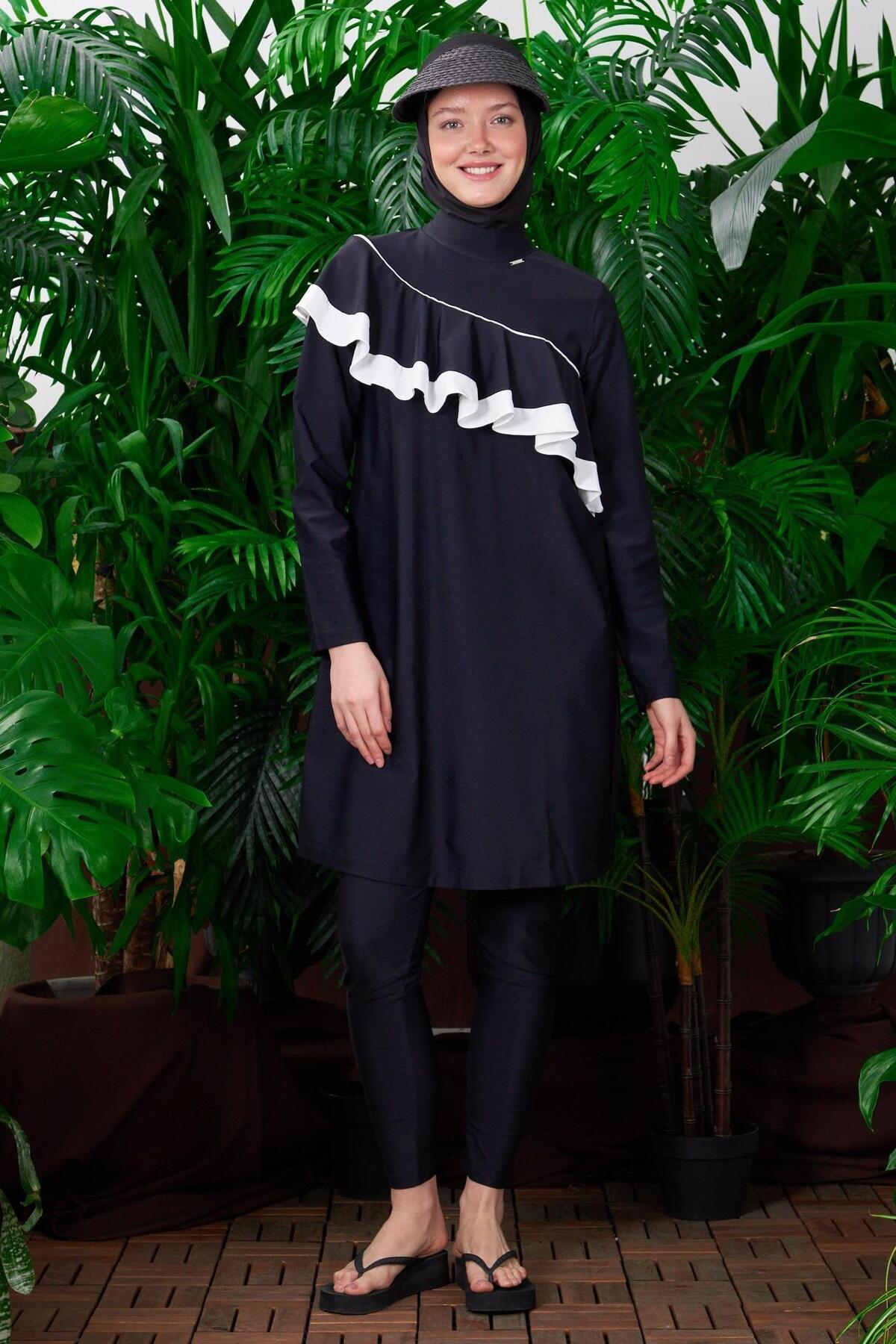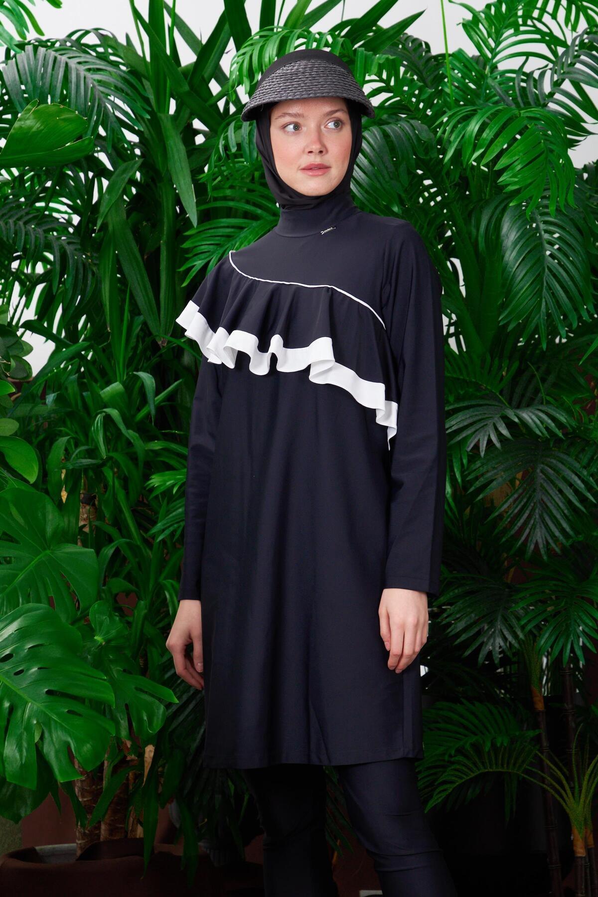 Biyeli Volanlı Tesettür Mayo Sw36.186 - Siyah Biyeli Volanlı Tesettür Mayo Sw36.186 - Siyah 4510 1