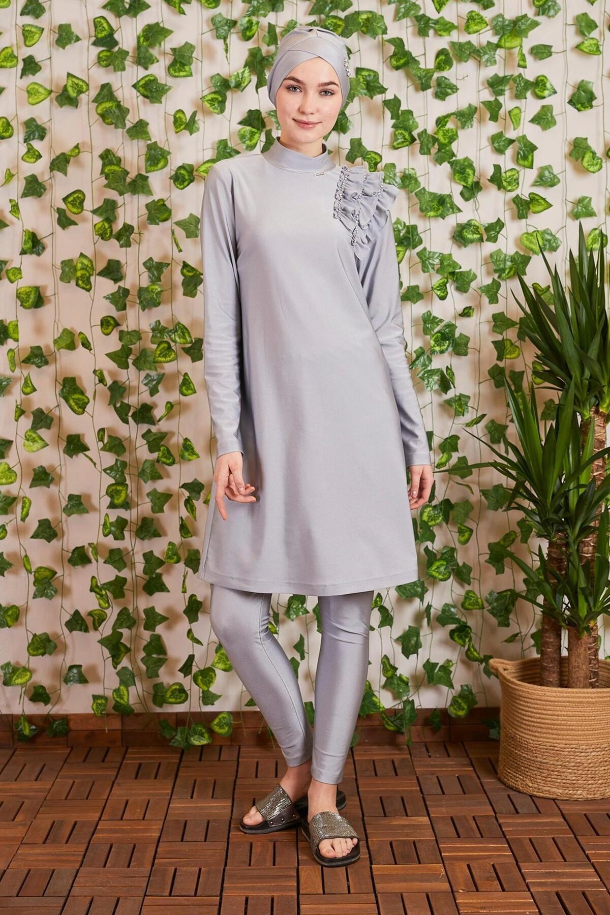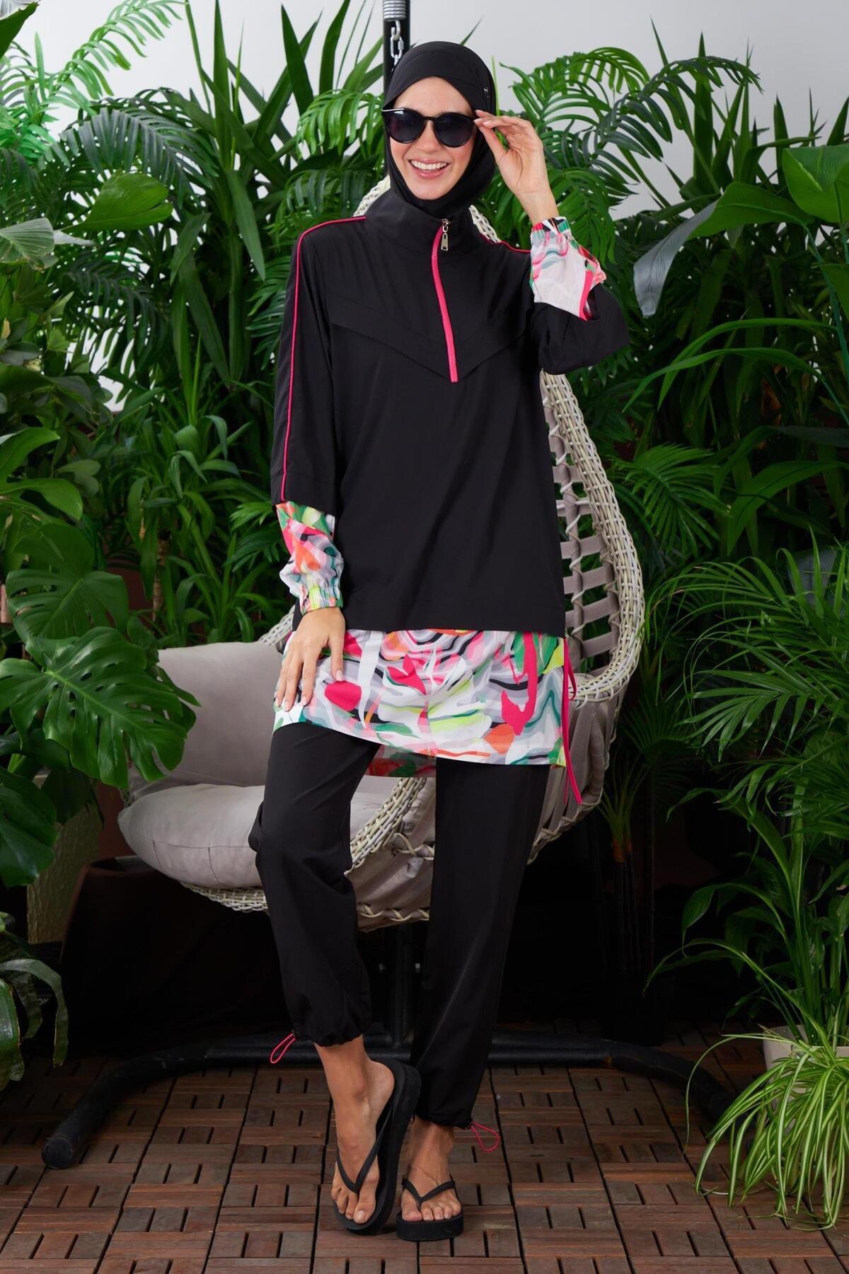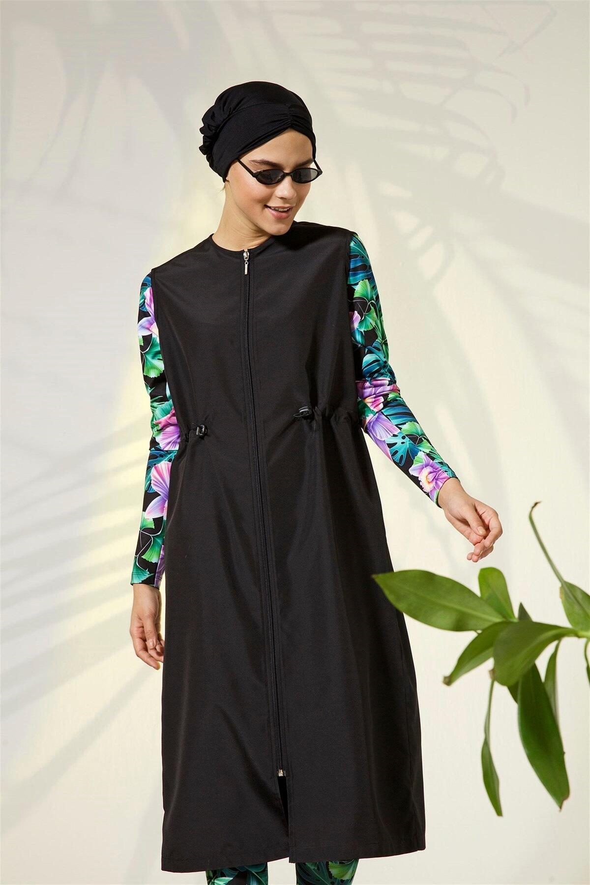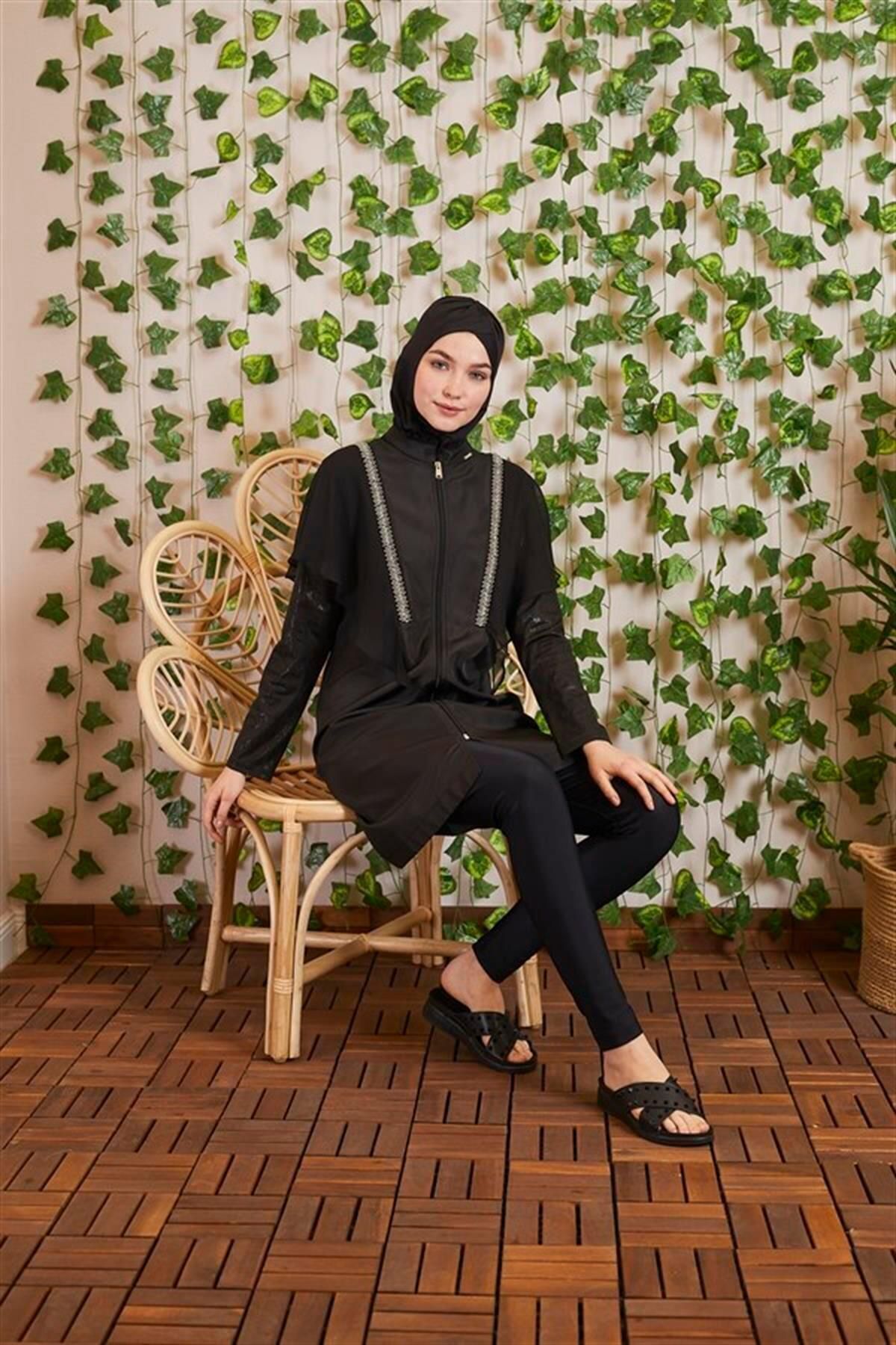 Biyeli Volanlı Tesettür Mayo Sw36.186 - Siyah Biyeli Volanlı Tesettür Mayo Sw36.186 - Siyah 4510 1