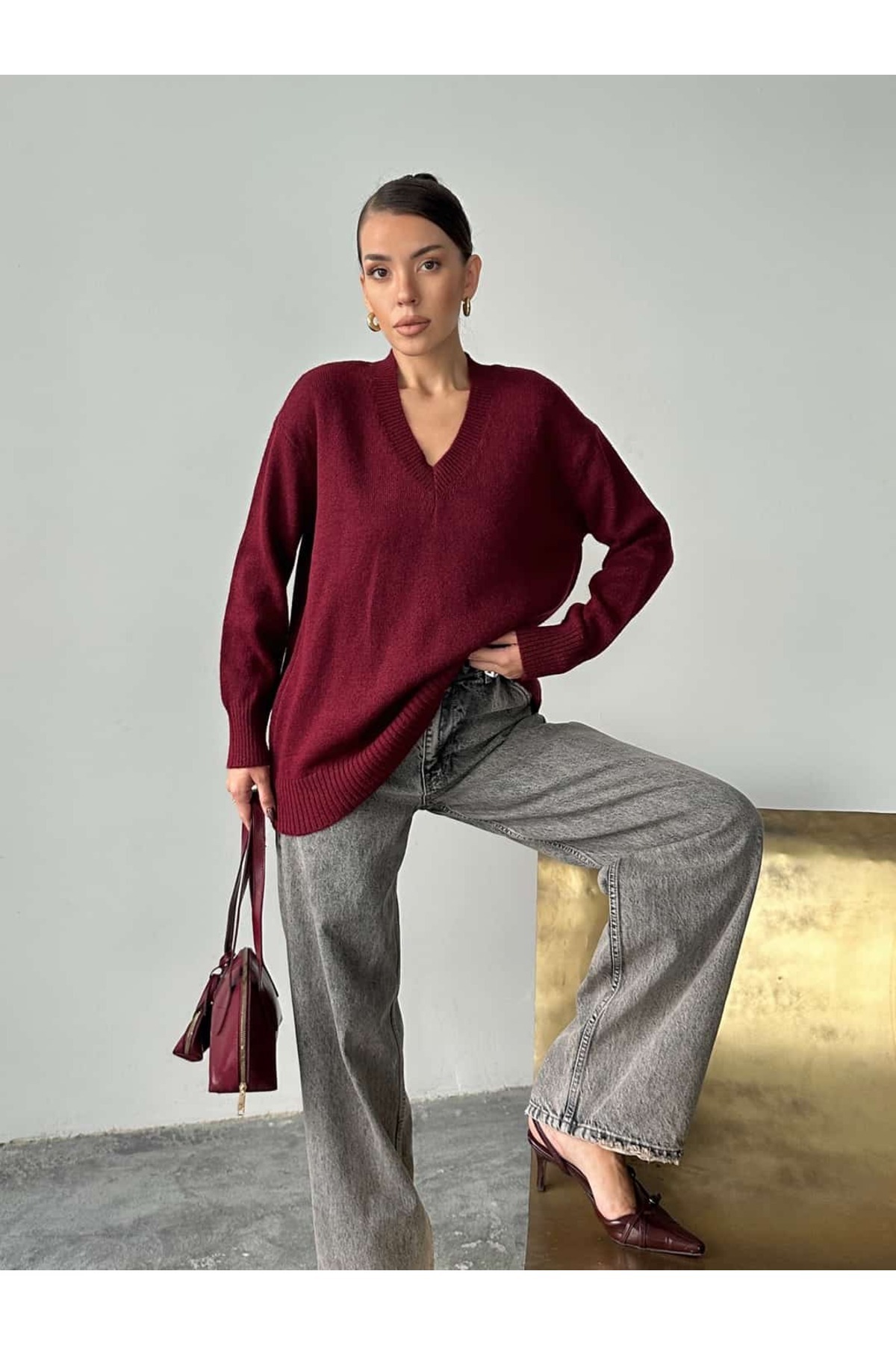 V Yaka Ribanalı Triko Kazak V Yaka Ribanalı Triko Kazak MD4112 Standart