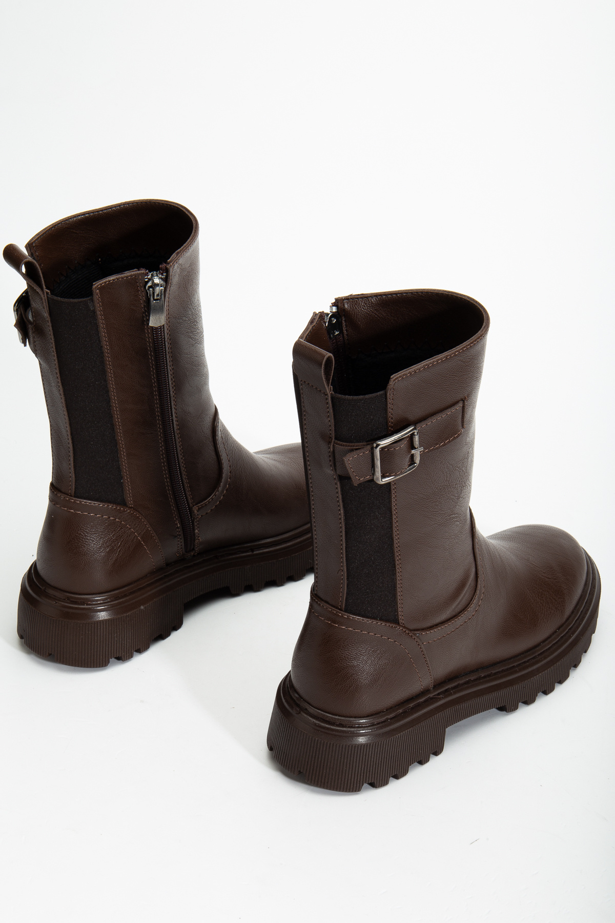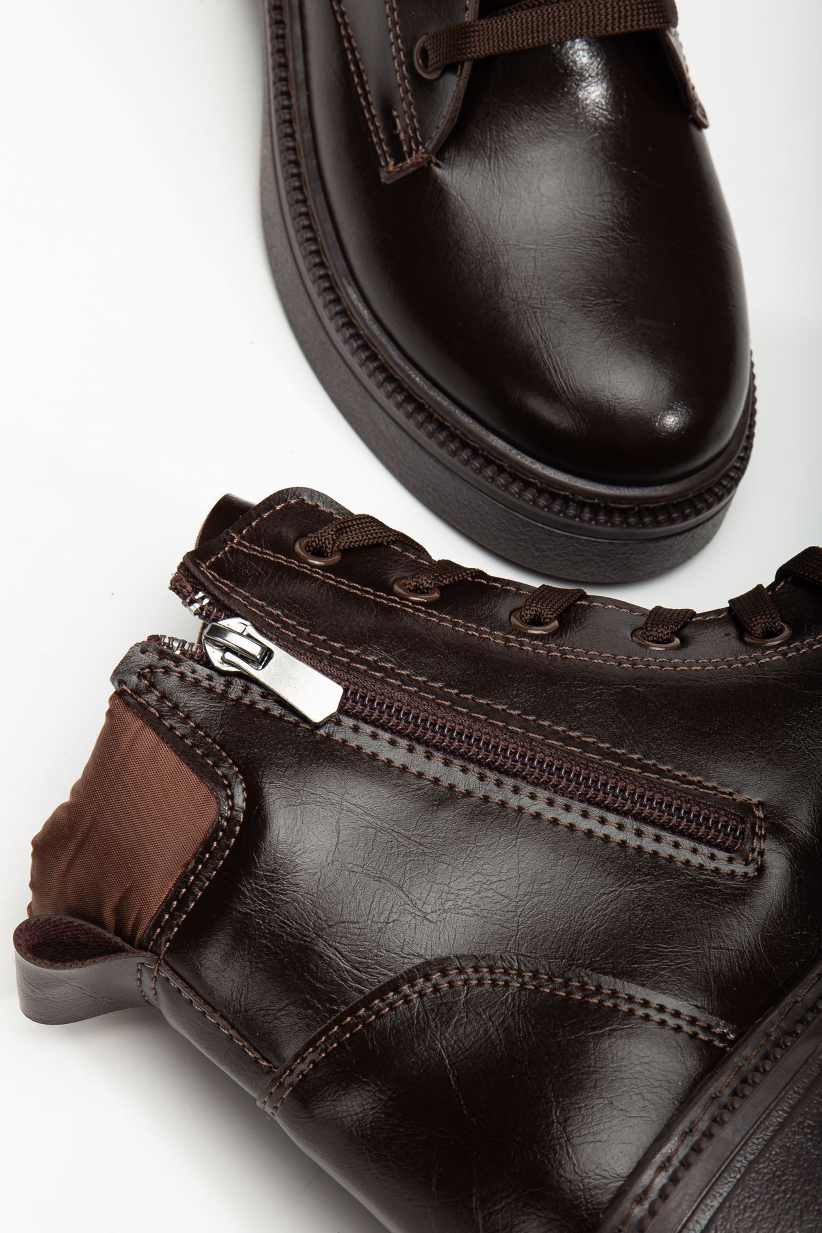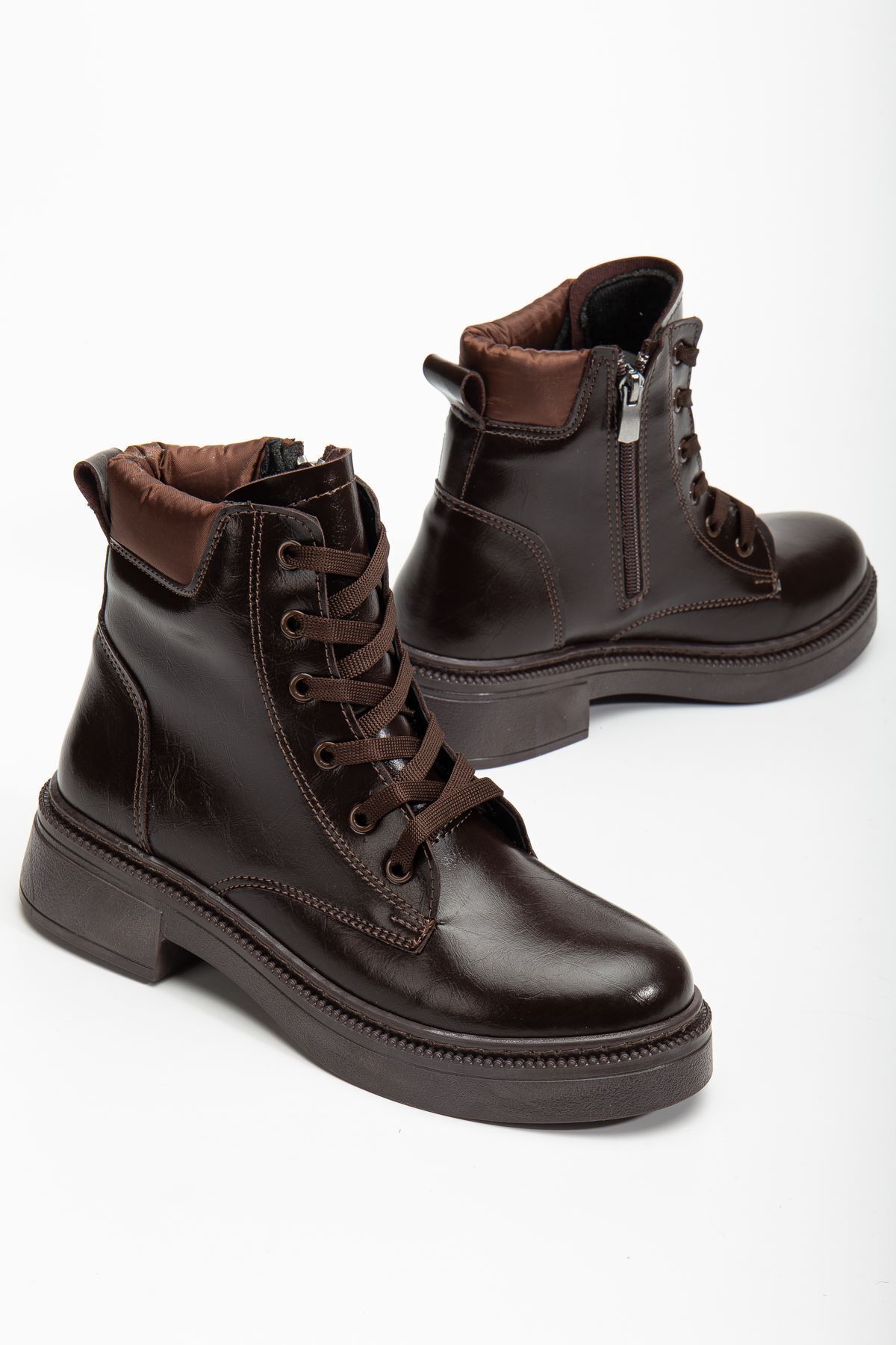 Kadın Kahverengi Cilt Bağcık Ve Fermuarlı Postal Bot Kadın Kahverengi Cilt Bağcık Ve Fermuarlı Postal Bot HYL560302 40