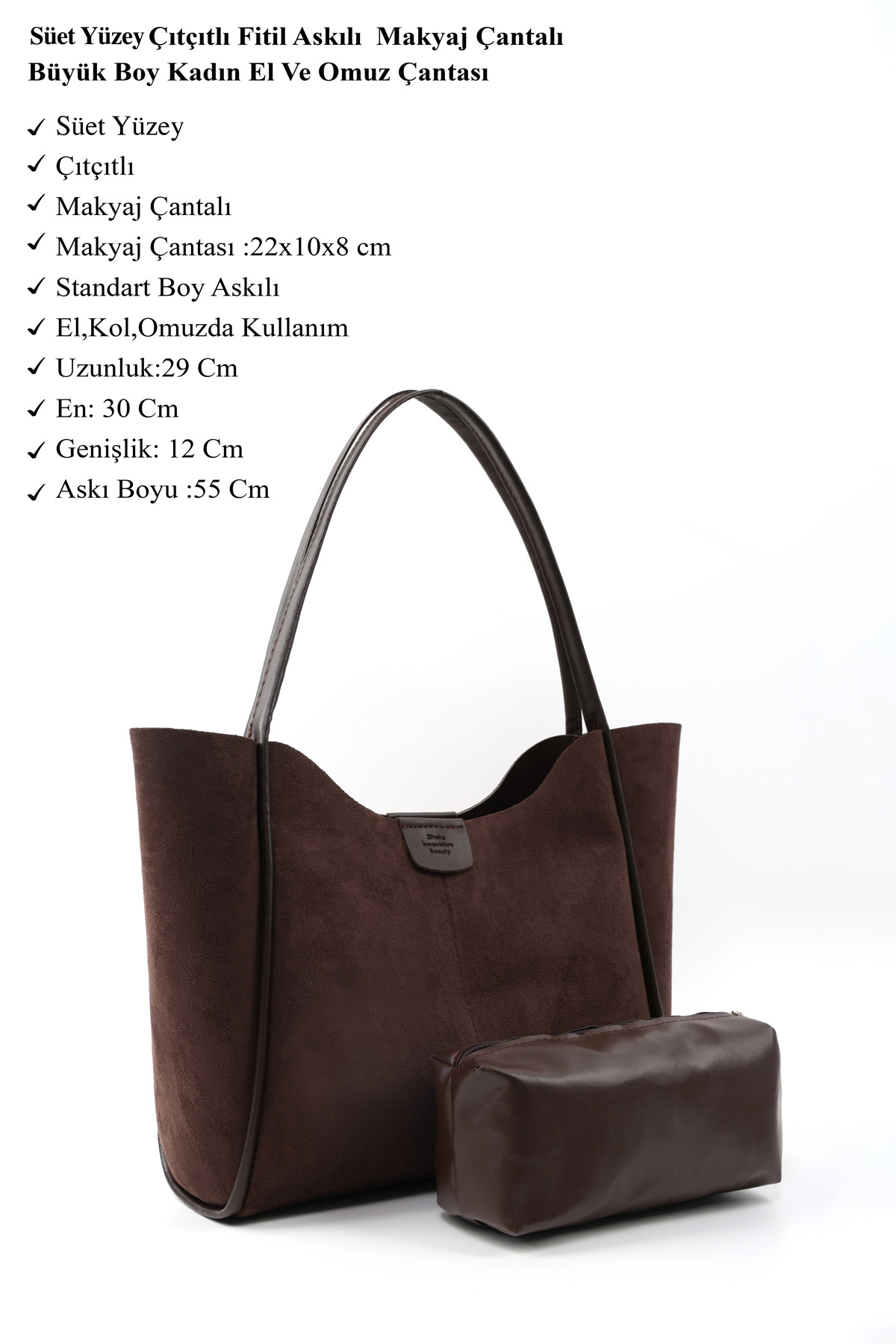 Kahverengi Süet Shk76 Çıtçıtlı Fitil Askılı Suni Deri Makyaj Çantalı Büyük Boy Kadın El ve Omuz Çant Kahverengi Süet Shk76 Çıtçıtlı Fitil Askılı Suni Deri Makyaj Çantalı Büyük Boy Kadın El ve Omuz Çant S225-00139 تک سایز
