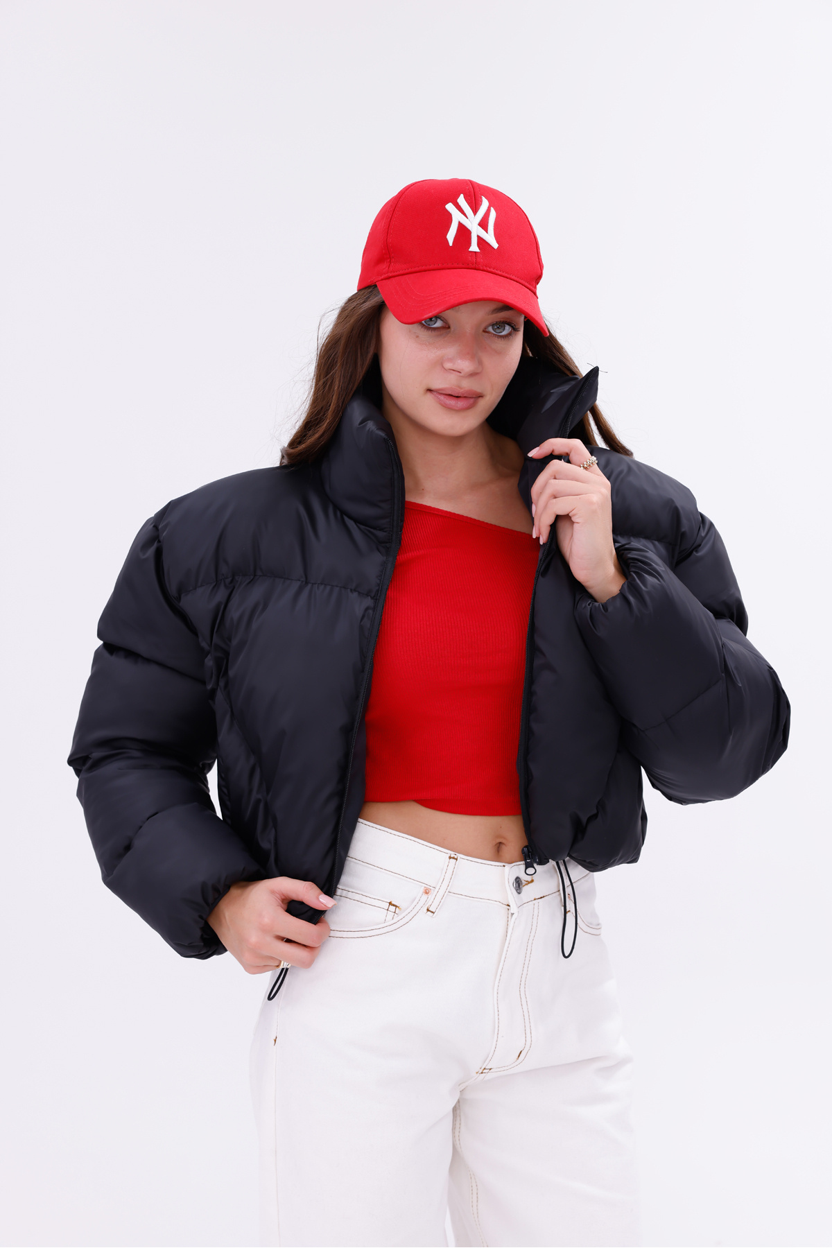 Siyah Kapüşonlu Kısa Şişme Mont Siyah Kapüşonlu Kısa Şişme Mont MD20260101 Standart