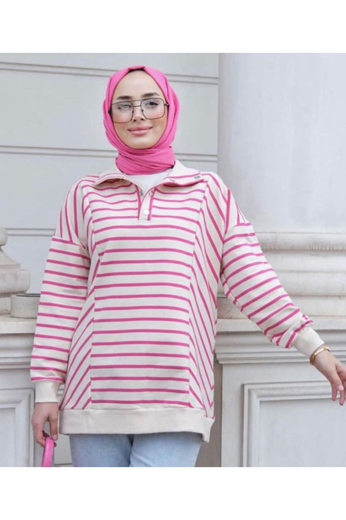 Kadın Önü Fermuarlı Polo Yaka Sweatshirt - Sarı Kadın Önü Fermuarlı Polo Yaka Sweatshirt - Sarı 383-25K001 XL