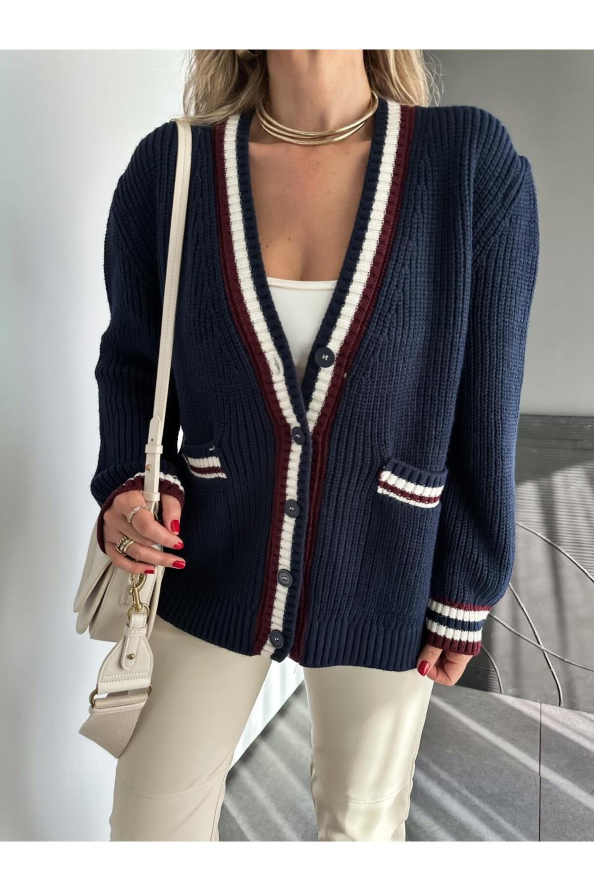Lacivert Şeritli Selanik Hırka Lacivert Şeritli Selanik Hırka 2669 Standart