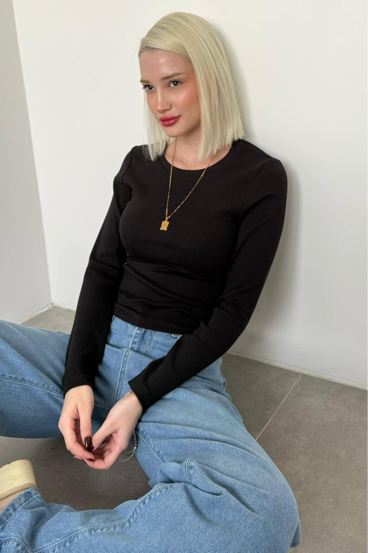Siyah Bisiklet Yaka Slim Fit Kadın Body MG2564 Siyah Bisiklet Yaka Slim Fit Kadın Body MG2564 XL