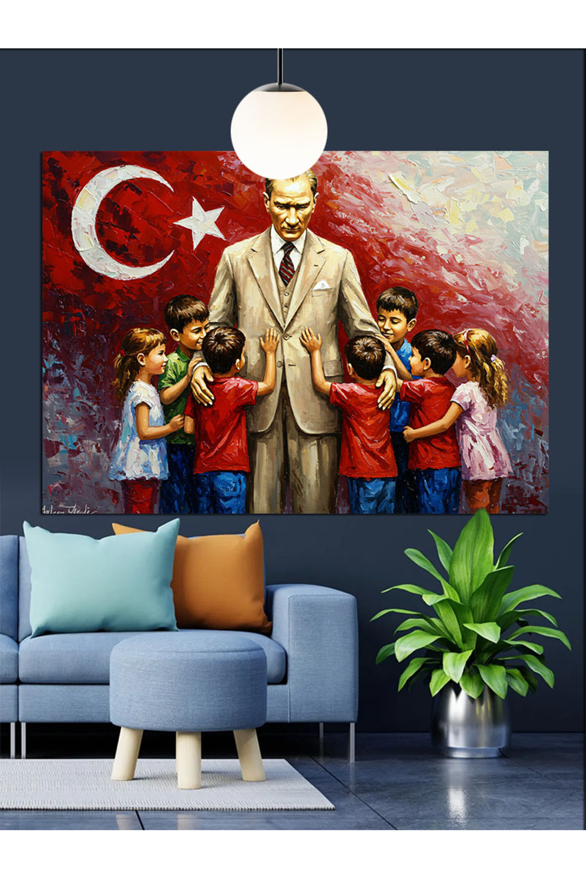 Atatürk ve Çocuklar Dekoratif Kanvas - Mdf Ahşap Tablo Atatürk ve Çocuklar Dekoratif Kanvas - Mdf Ahşap Tablo YTACNVS515055 100 x 140