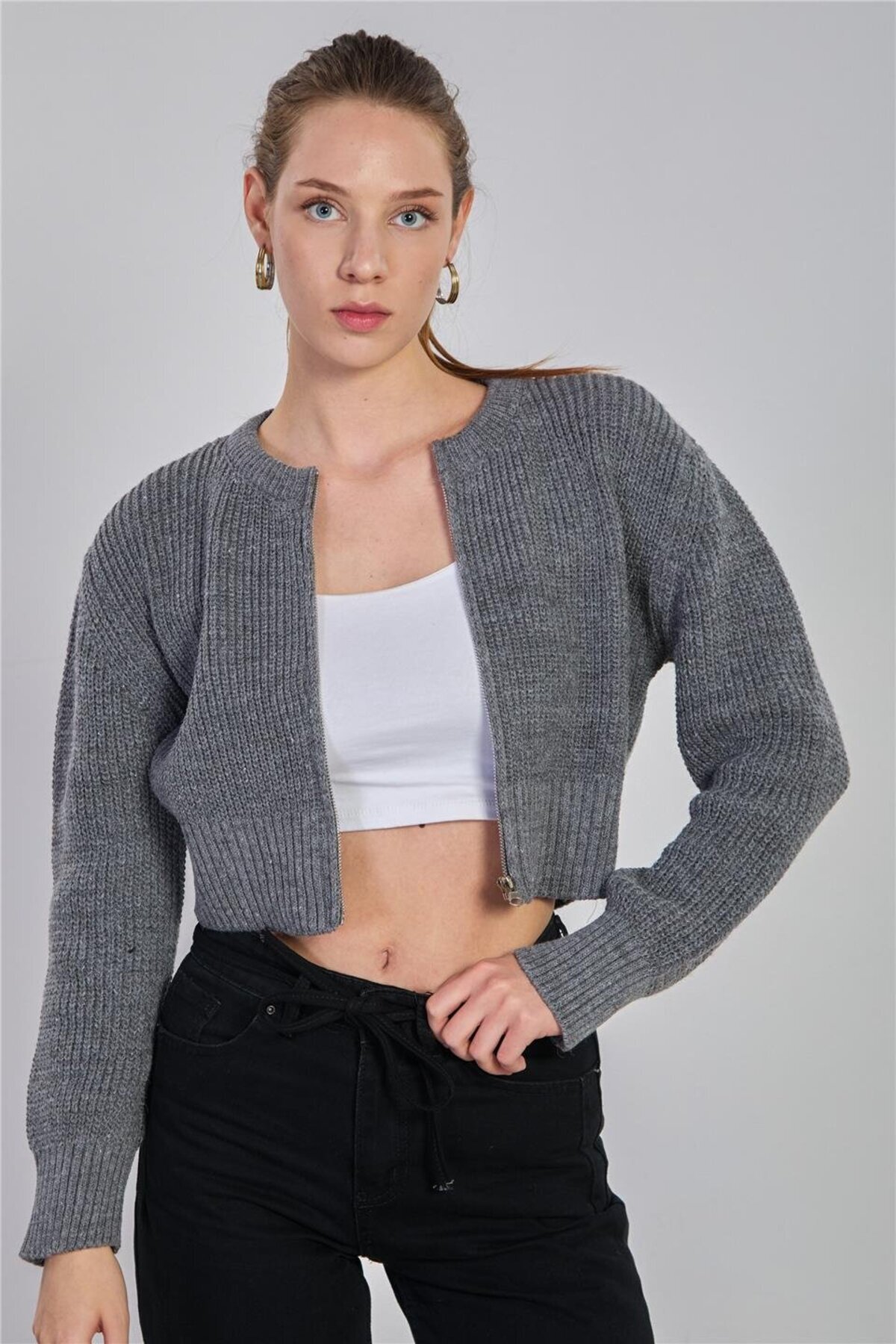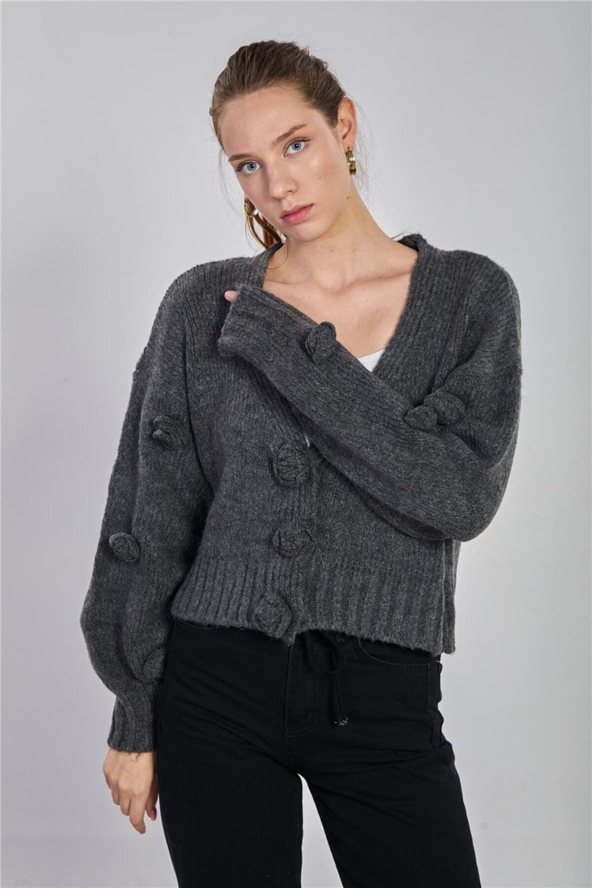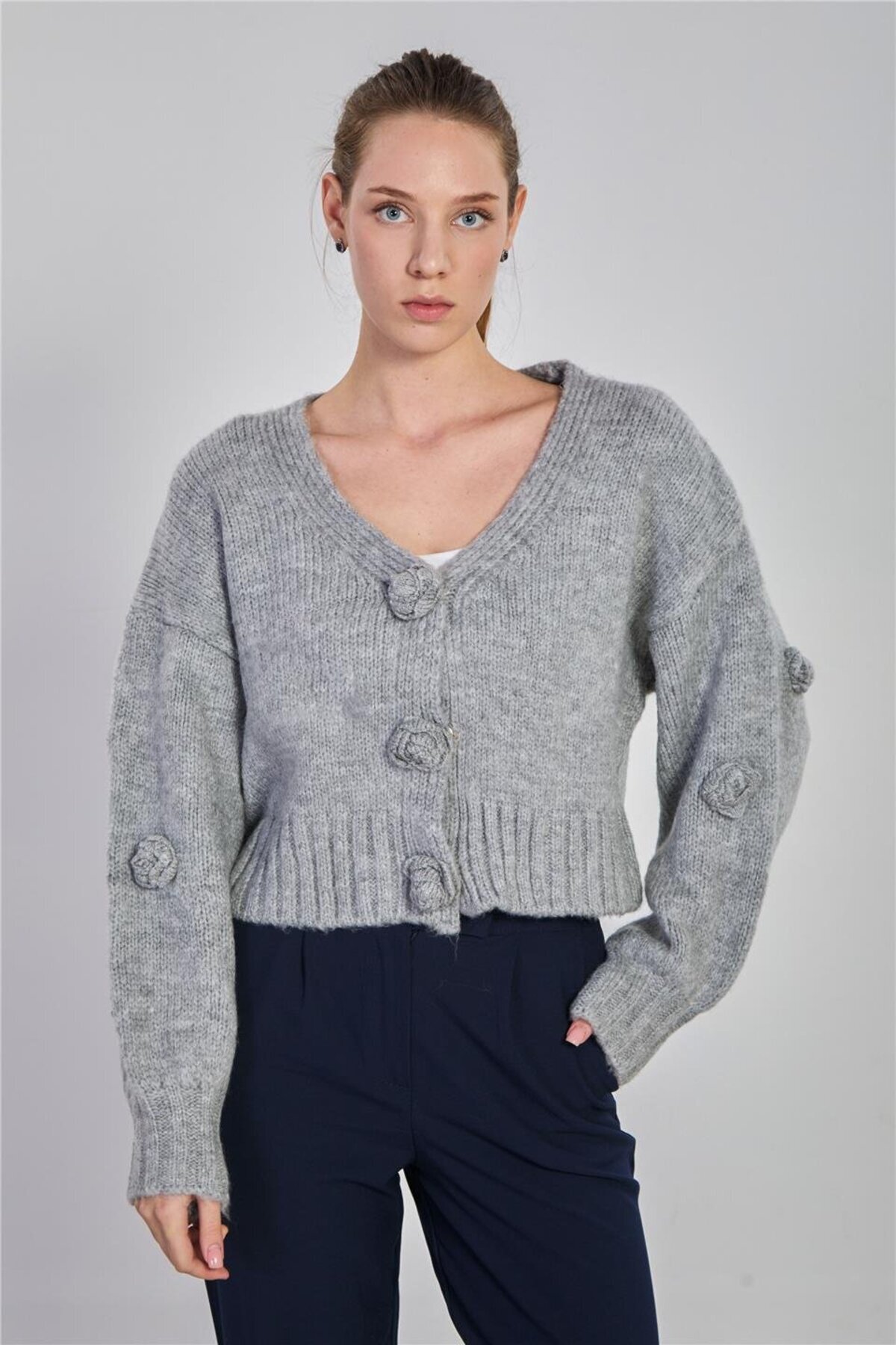 Kadın Çıtçıtlı Gül Detaylı Triko Hırka - Antrasit Kadın Çıtçıtlı Gül Detaylı Triko Hırka - Antrasit 1099-25K08004 Standart