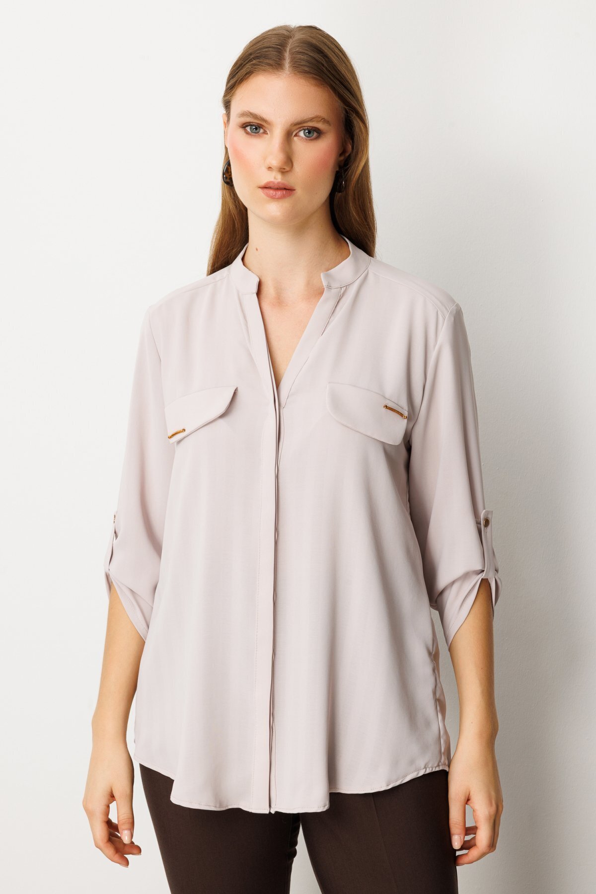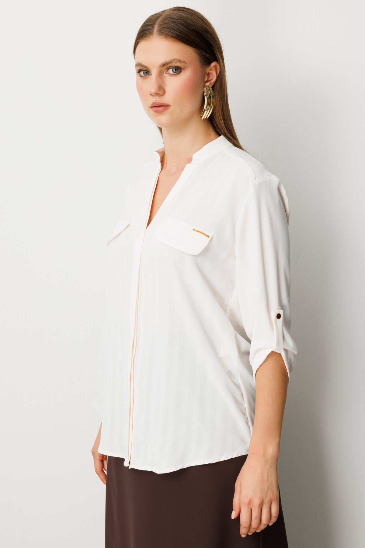 Mi Kolu Katlamalı Gömlek Mi Kolu Katlamalı Gömlek 26K.MI.BLZ.84510.01 50