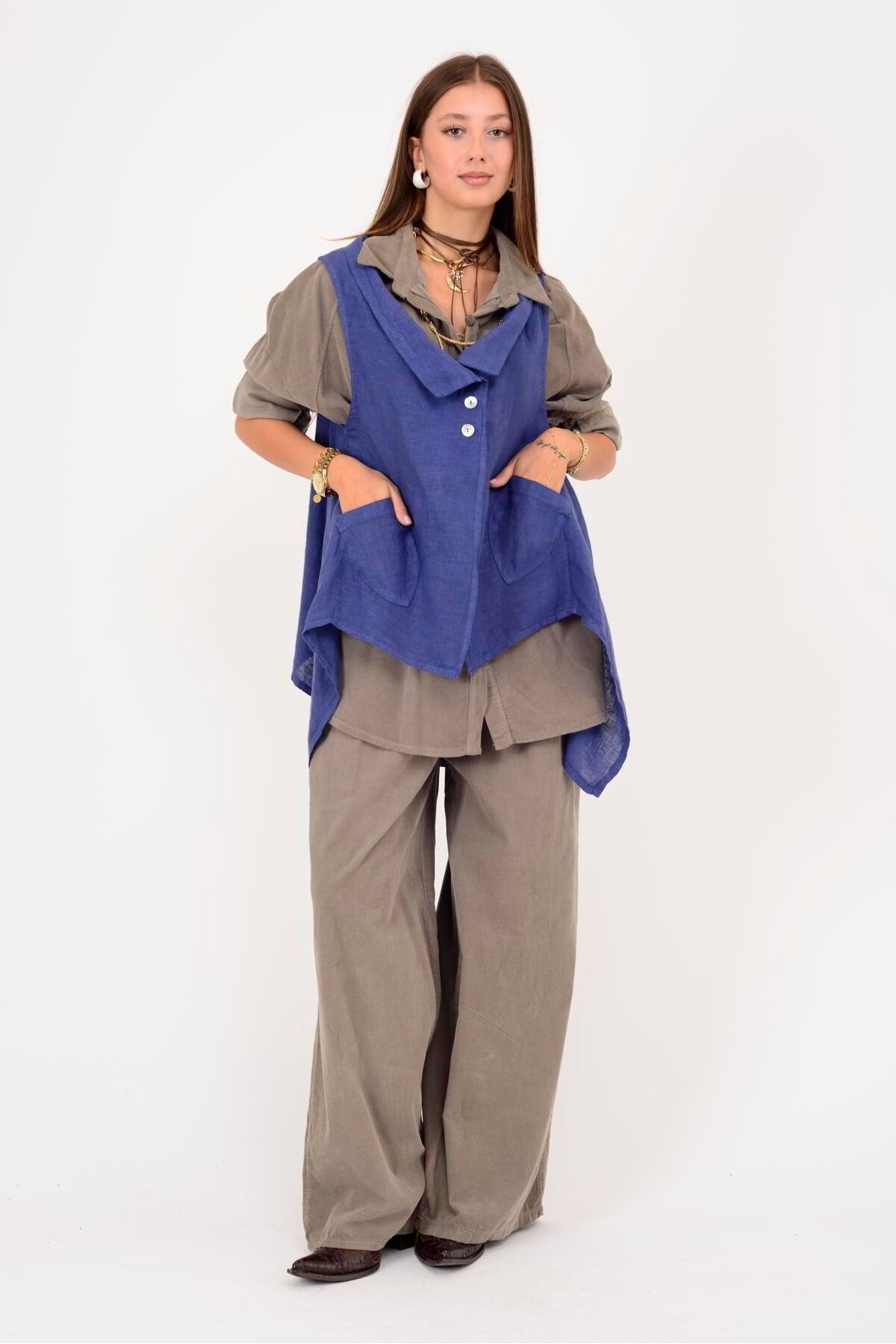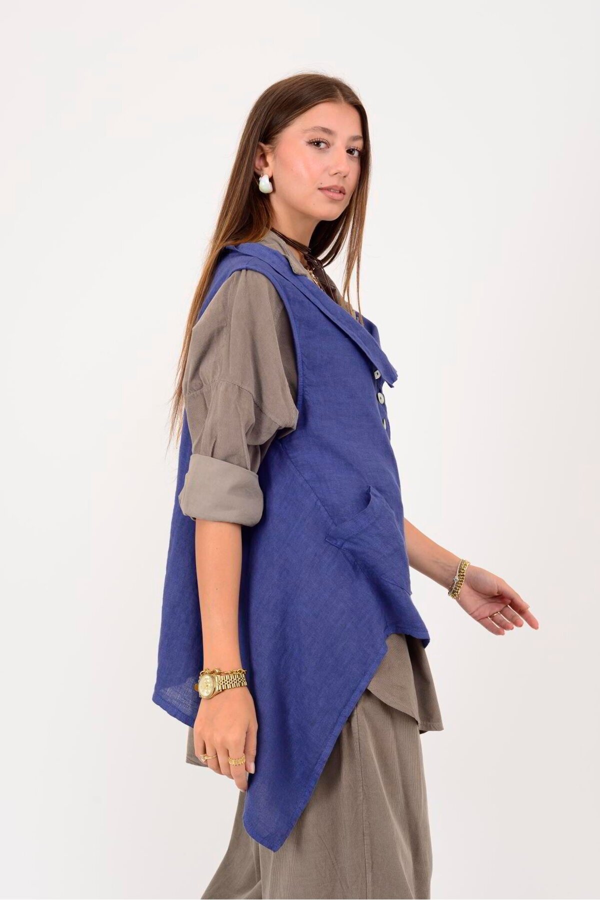 12168 ASİMETRİK KESİM DÜĞME DETAYLI KOLSUZ KETEN BLUZ 12168 ASİMETRİK KESİM DÜĞME DETAYLI KOLSUZ KETEN BLUZ 25Y.T.TNK.00013-İ0 0