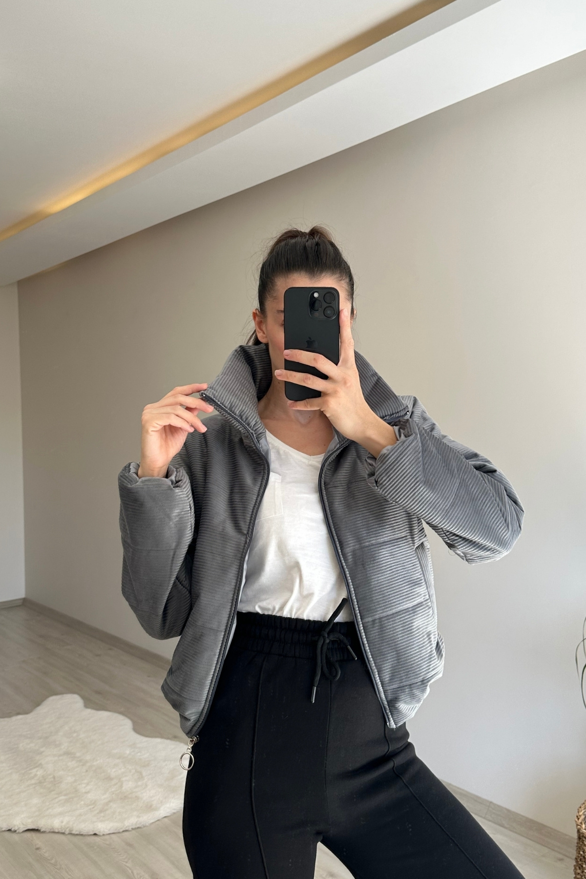 kadın fitilli desen kadife kısa şişme mont NM005 kadın fitilli desen kadife kısa şişme mont NM005 XL