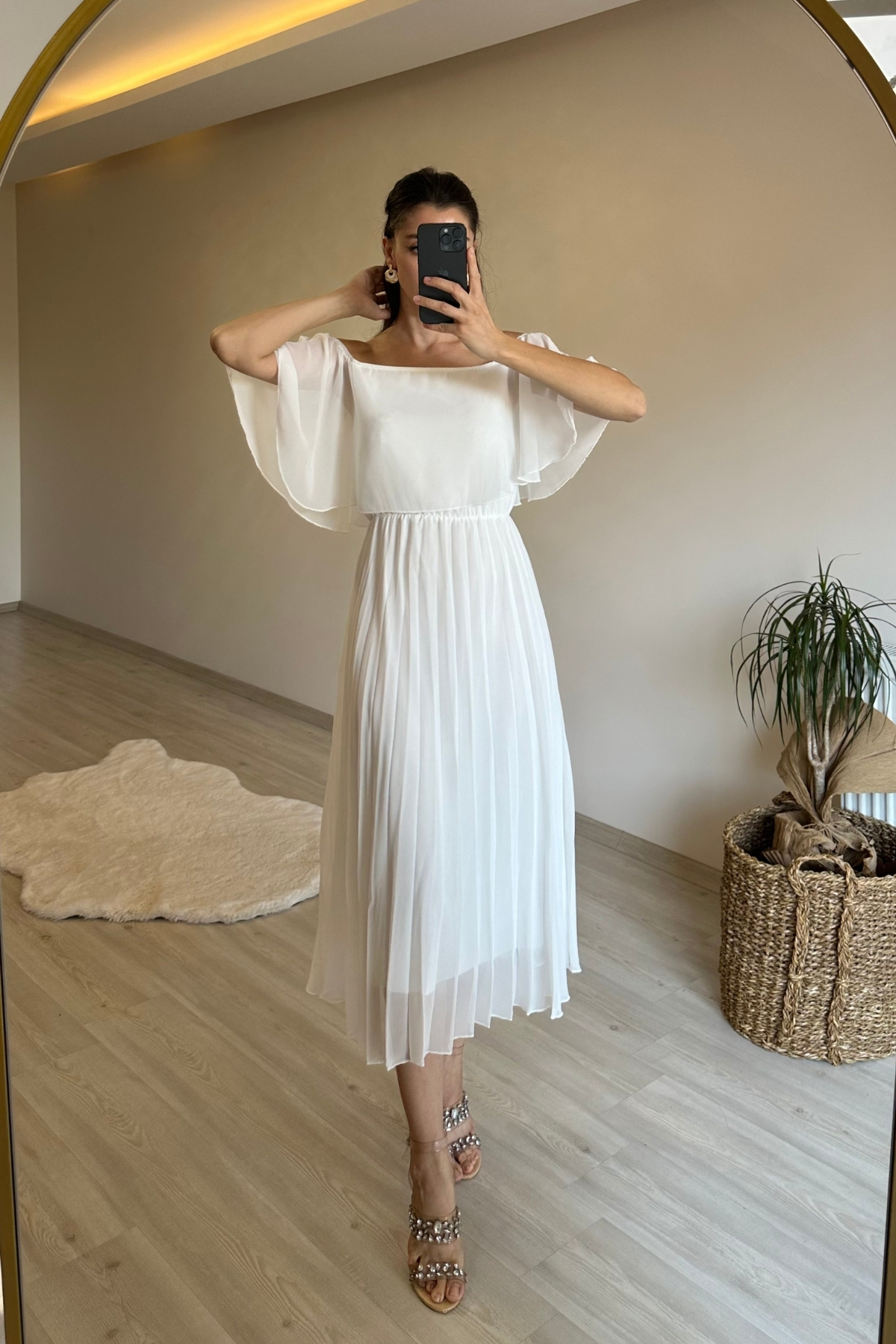 kadın omzu açık piliseli midi şifon elbise NM006 kadın omzu açık piliseli midi şifon elbise NM006 38
