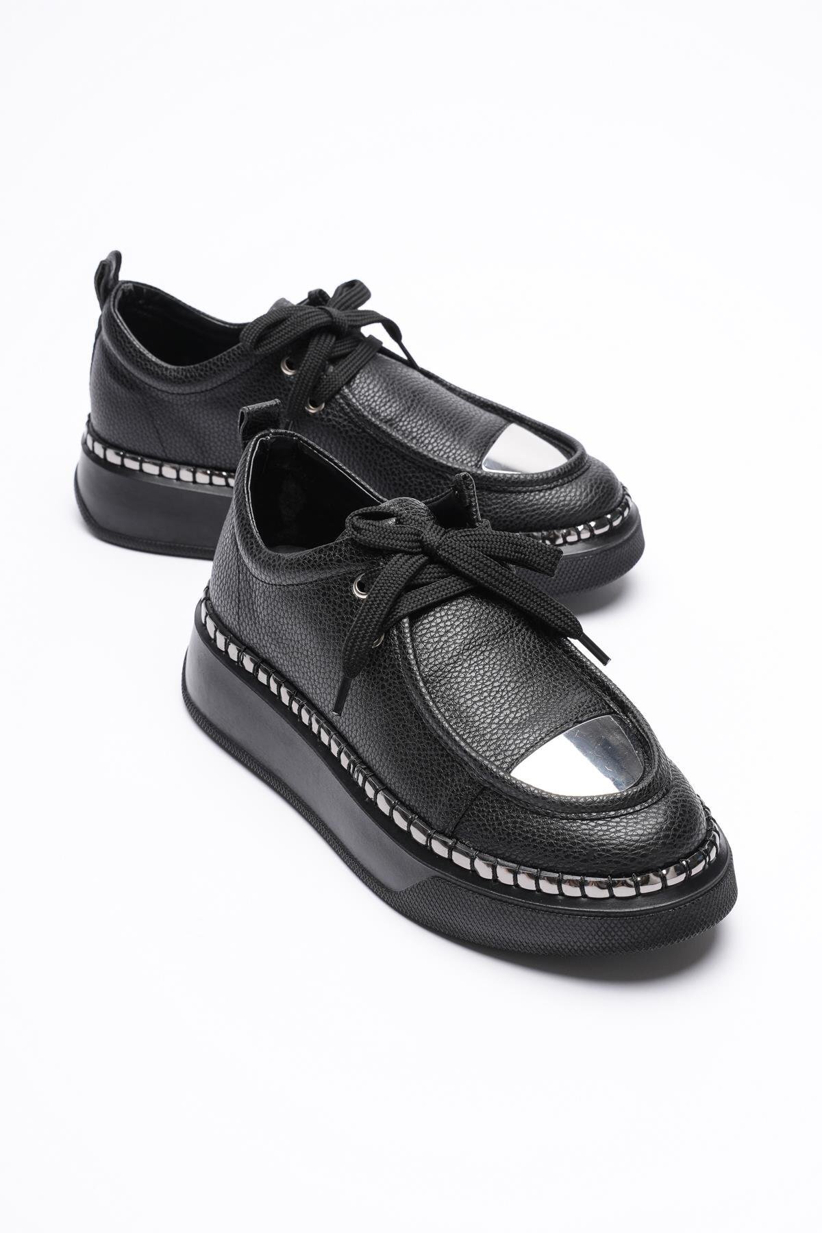 Kadın Deri Sneaker Bağcıklı Spor Ayakkabı Siyah Mareo Kadın Deri Sneaker Bağcıklı Spor Ayakkabı Siyah Mareo 52-28-600 40