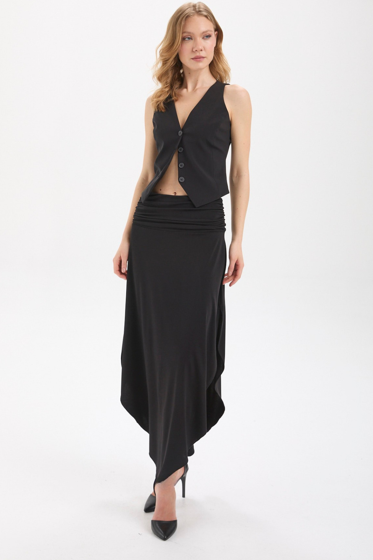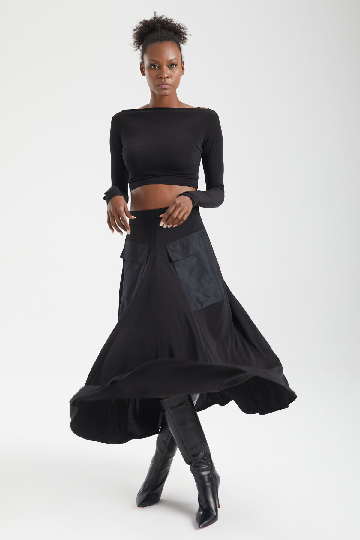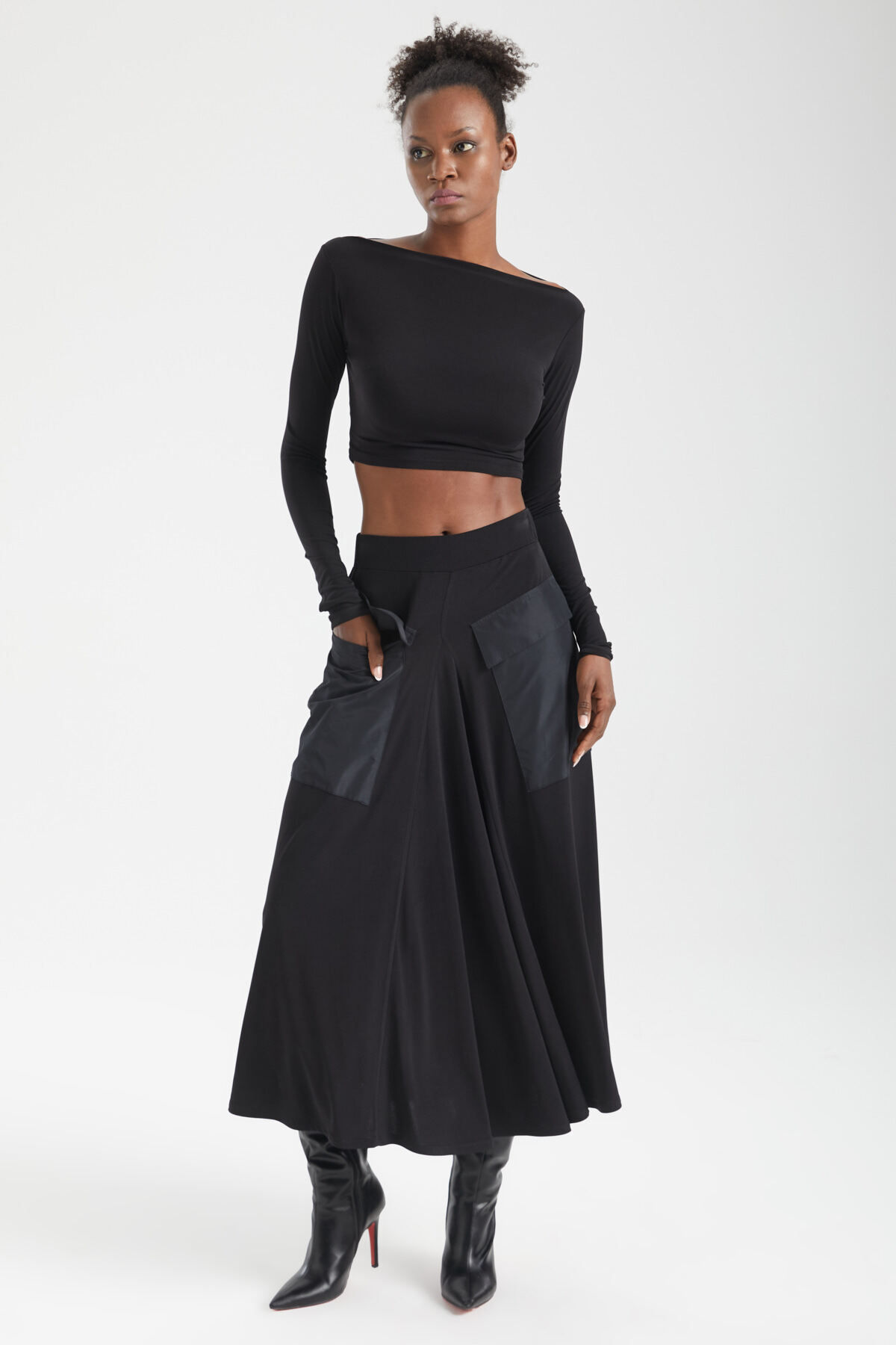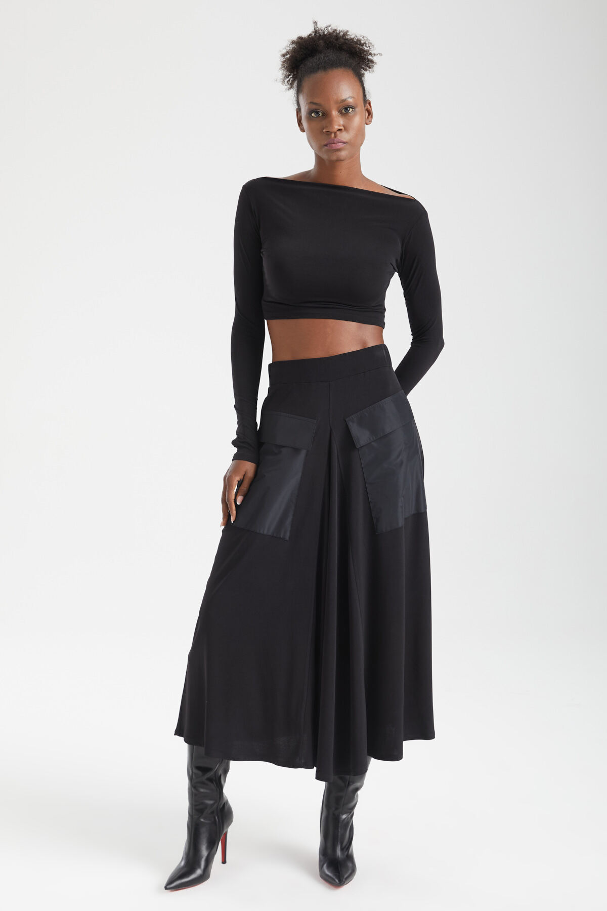 Kadın Siyah Paraşüt Cepli A-line Kesim Bohem Midi Etek Günlük, Ofis ve Akşam Stili Kadın Siyah Paraşüt Cepli A-line Kesim Bohem Midi Etek Günlük, Ofis ve Akşam Stili 25YRN0021 XL