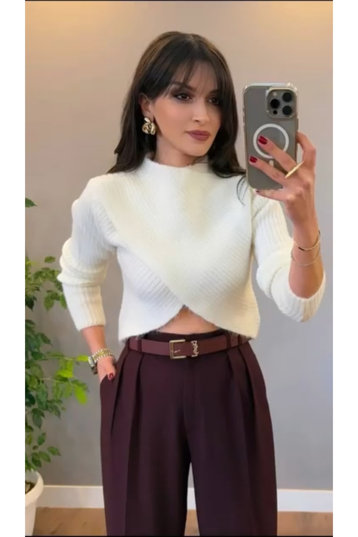 Yüksek Yaka Fitilli Crop Triko – Butik Koleksiyon Yüksek Yaka Fitilli Crop Triko – Butik Koleksiyon 75106 تک سایز
