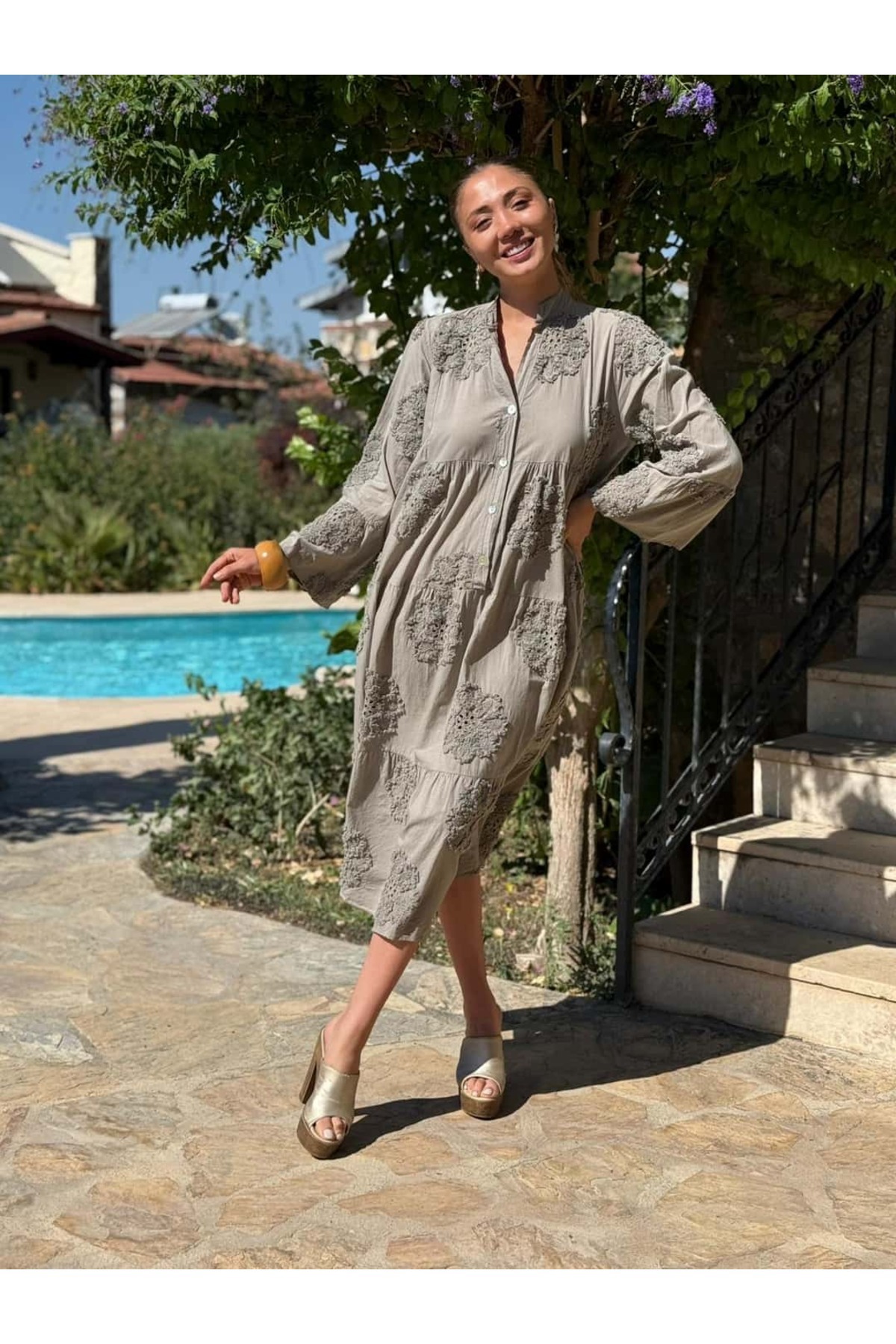 AN10728 CLEMENT BÜZGÜLÜ KOLLU PÜSKÜL DETAYLI VOLANLI ELBİSE AN10728 CLEMENT BÜZGÜLÜ KOLLU PÜSKÜL DETAYLI VOLANLI ELBİSE 25Y.T.ELB.00456-001 0