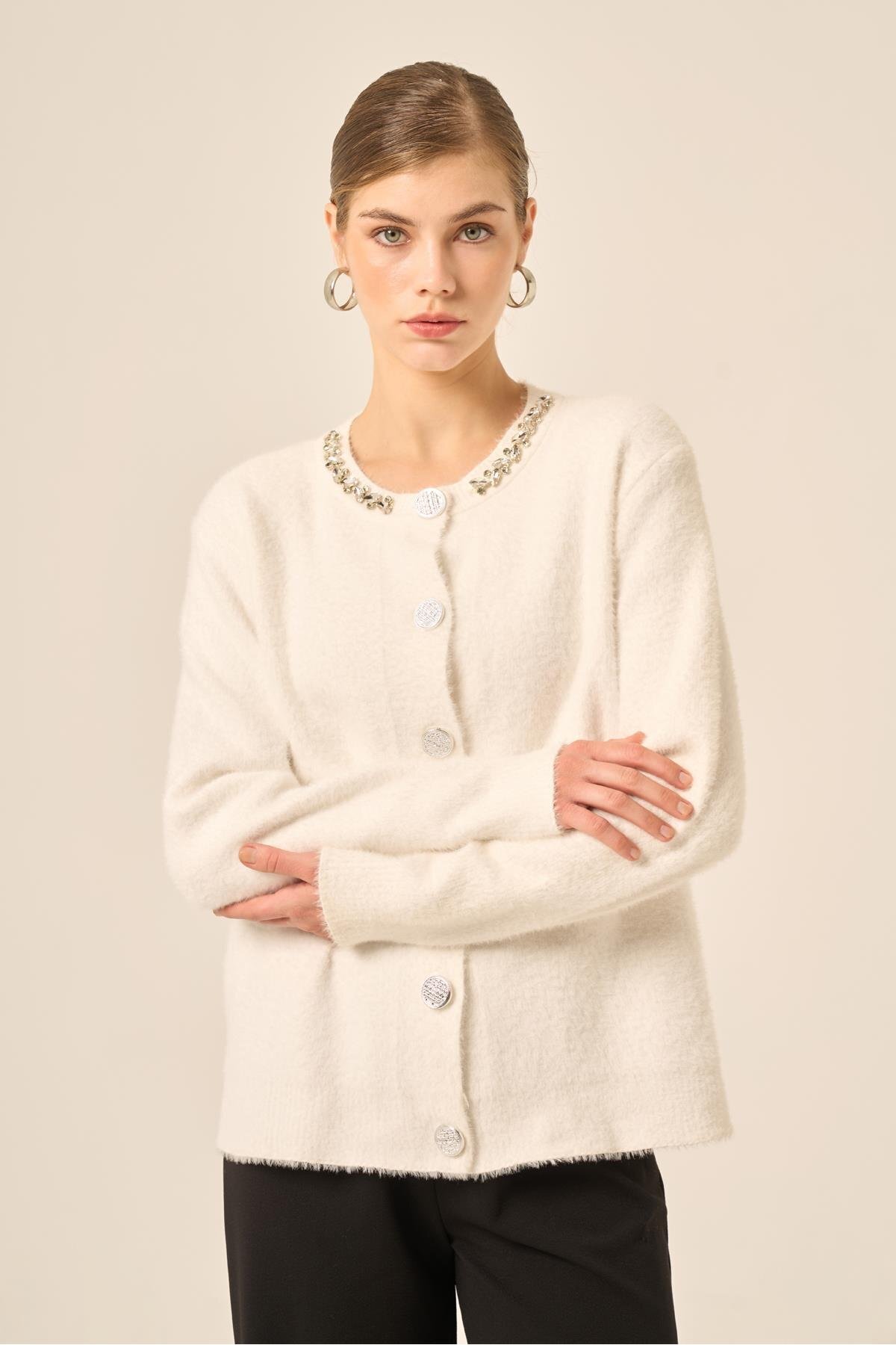Ftz Kadın Saçak Detaylı Hırka Ekru 20781 Ftz Kadın Saçak Detaylı Hırka Ekru 20781 42-44