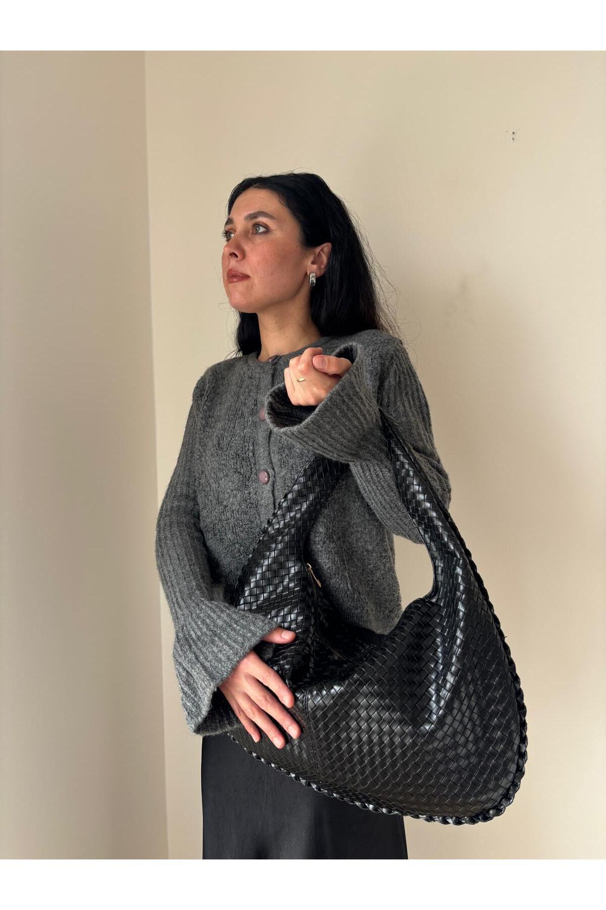 Kadın Hazeran Model Örgü Detaylı Büyük Boy Kol Çantası Kadın Hazeran Model Örgü Detaylı Büyük Boy Kol Çantası Hazeran-1210 تک سایز