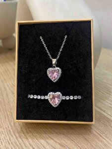 Romantik Pembe Kalp Taşlı Kolye - Paslanmaz Çelik Silver Romantik Pembe Kalp Taşlı Kolye - Paslanmaz Çelik Silver EYS-007 Standart