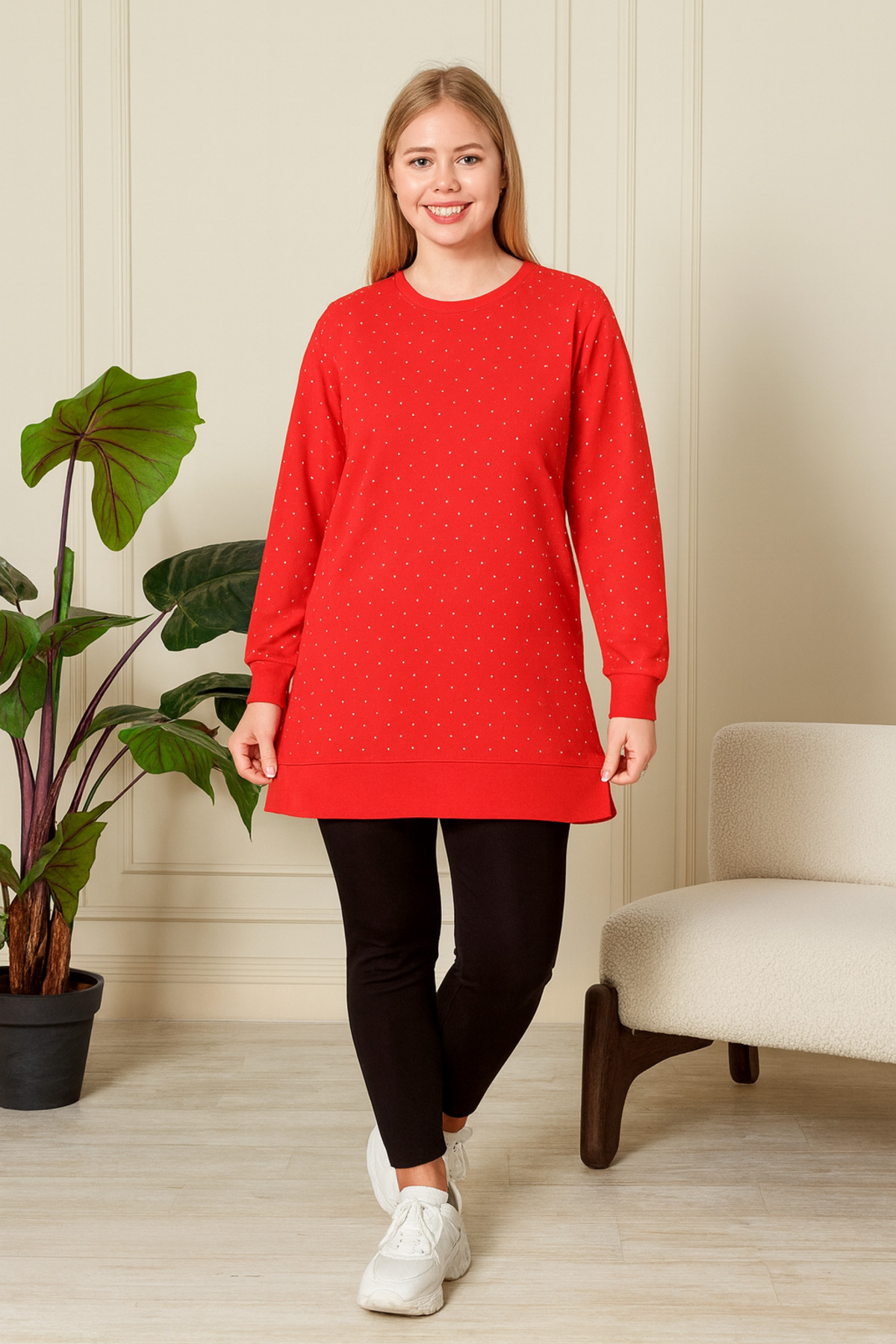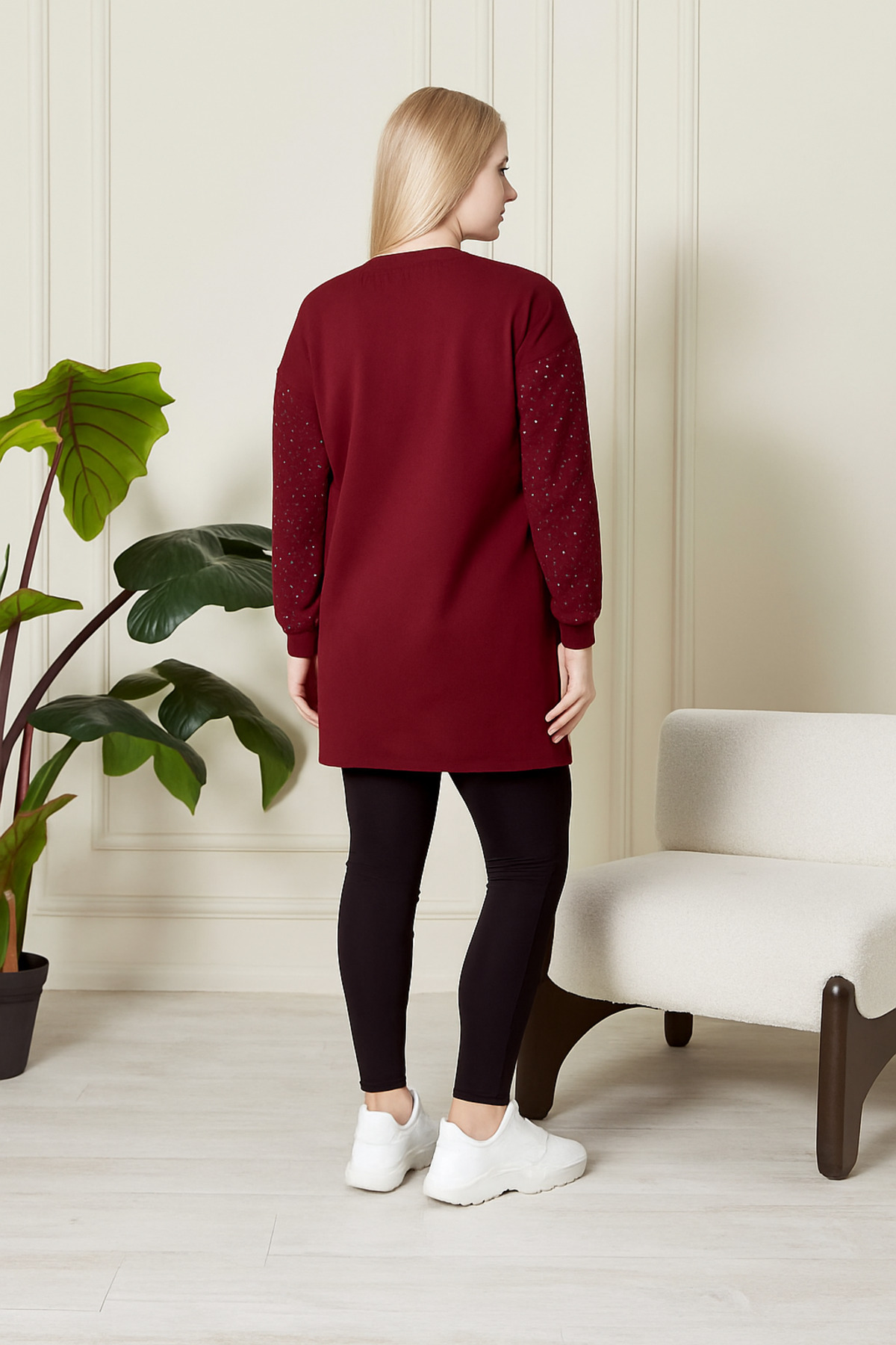 Kadın Bordo Yırtmaçlı Kristal Taş Aksesuarlı Tunik Kadın Bordo Yırtmaçlı Kristal Taş Aksesuarlı Tunik BTTAŞ 2XL