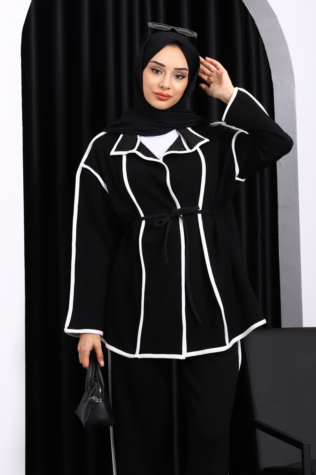 Siyah Biyeli Modal Ceket Pantolonlu Takım Siyah Biyeli Modal Ceket Pantolonlu Takım IMJ007782 2